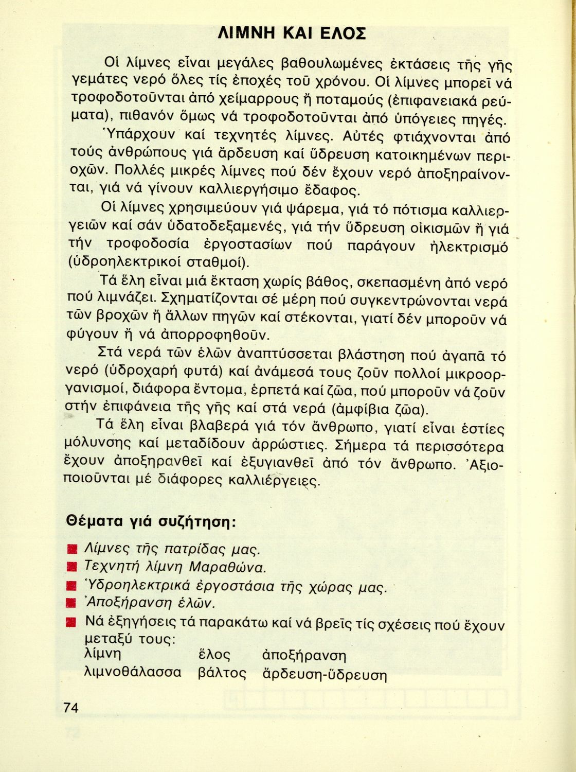 Παρουσίαση περιεχομένου: Σχολικό εγχειρίδιο για την Δ΄ Δημοτικού για το μάθημα της Μελέτης του Περιβάλλοντος. Το εγχειρίδιο περιλαμβάνει εισαγωγικά γενικές γνώσεις για το περιβάλλον, για το έδαφος κ.α. Το κύριο μέρος του βιβλίου ασχολείται με όλους τους έμβιους οργανισμούς της ξηράς και της θάλασσας και την σημασία και σπουδαιότητα του φυσικού και ζωικού βασιλείου. Το τελευταίο κεφάλαιο περιλαμβάνει την ανακεφαλαίωση των προηγούμενων αλλά δίνει ακόμα πολύτιμες συμβουλές για τους μικρούς μαθητές και μαθήτριες για την καλύτερη και ασφαλέστερη καθημερινότητά τους.