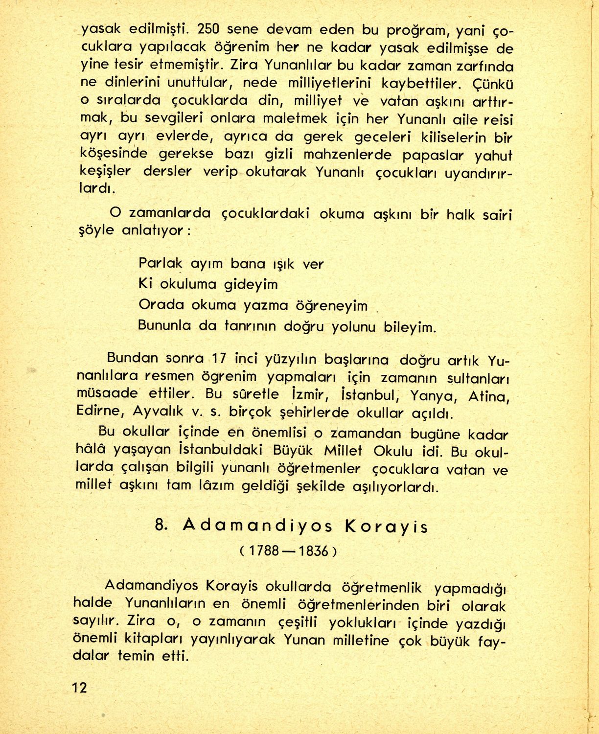 Βαθμίδα εκπαίδευσης: Πρωτοβάθμια Τάξη: ΣΤ' Δημοτικού Μάθημα: Ιστορία Γλώσσα: Τουρκικά Παρουσίαση περιεχομένου: Σχολικό εγχειρίδιο Ιστορίας για την ΣΤ΄ Δημοτικού των μουσουλμανικών σχολείων που καλύπτει την περίοδο από την άλωση της Κωνσταντινούπολης ως τον Β΄ Παγκόσμιο Πόλεμο. |