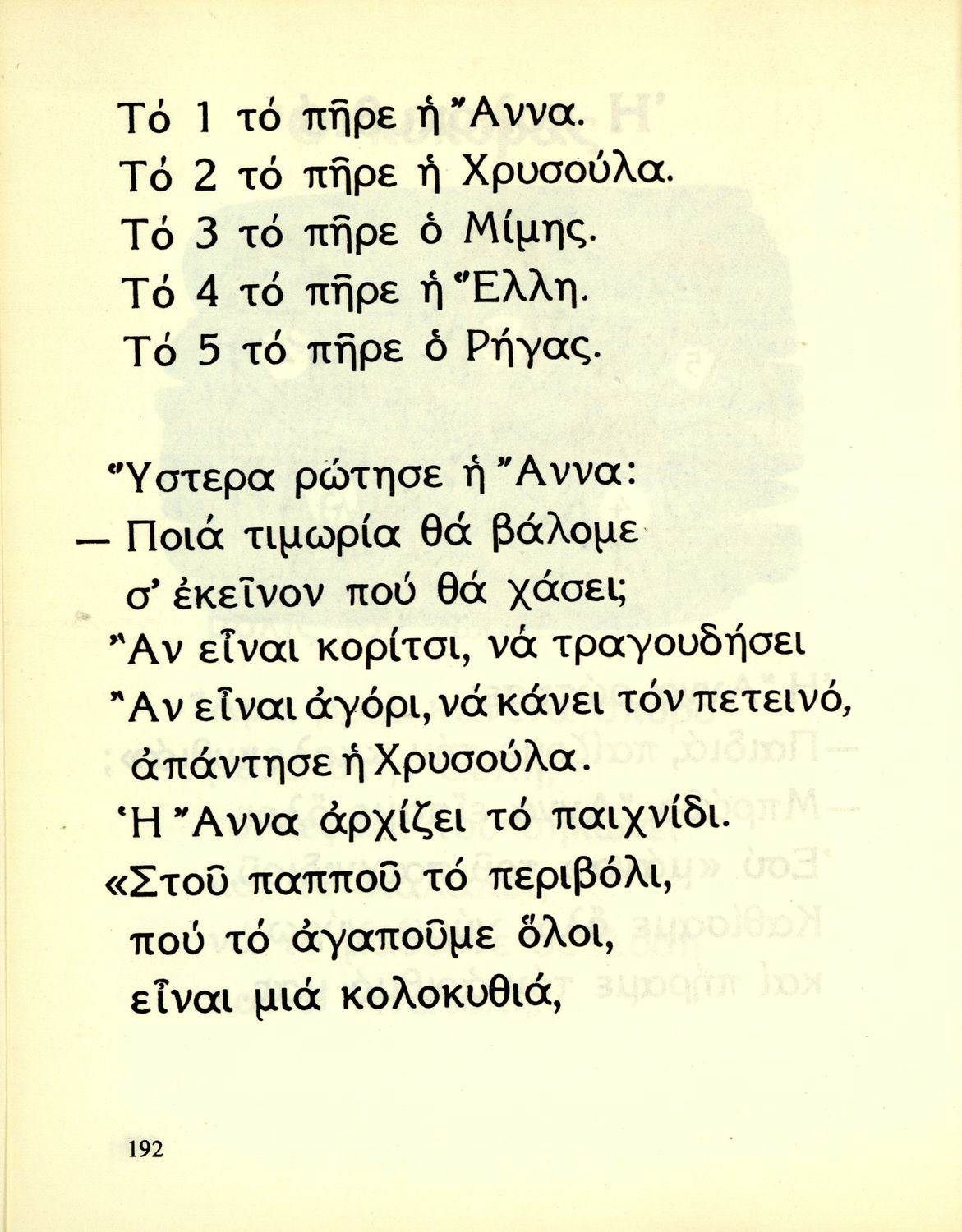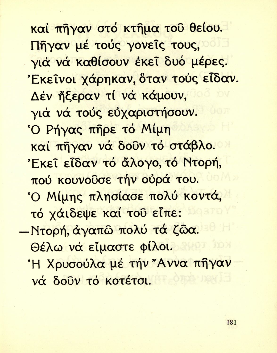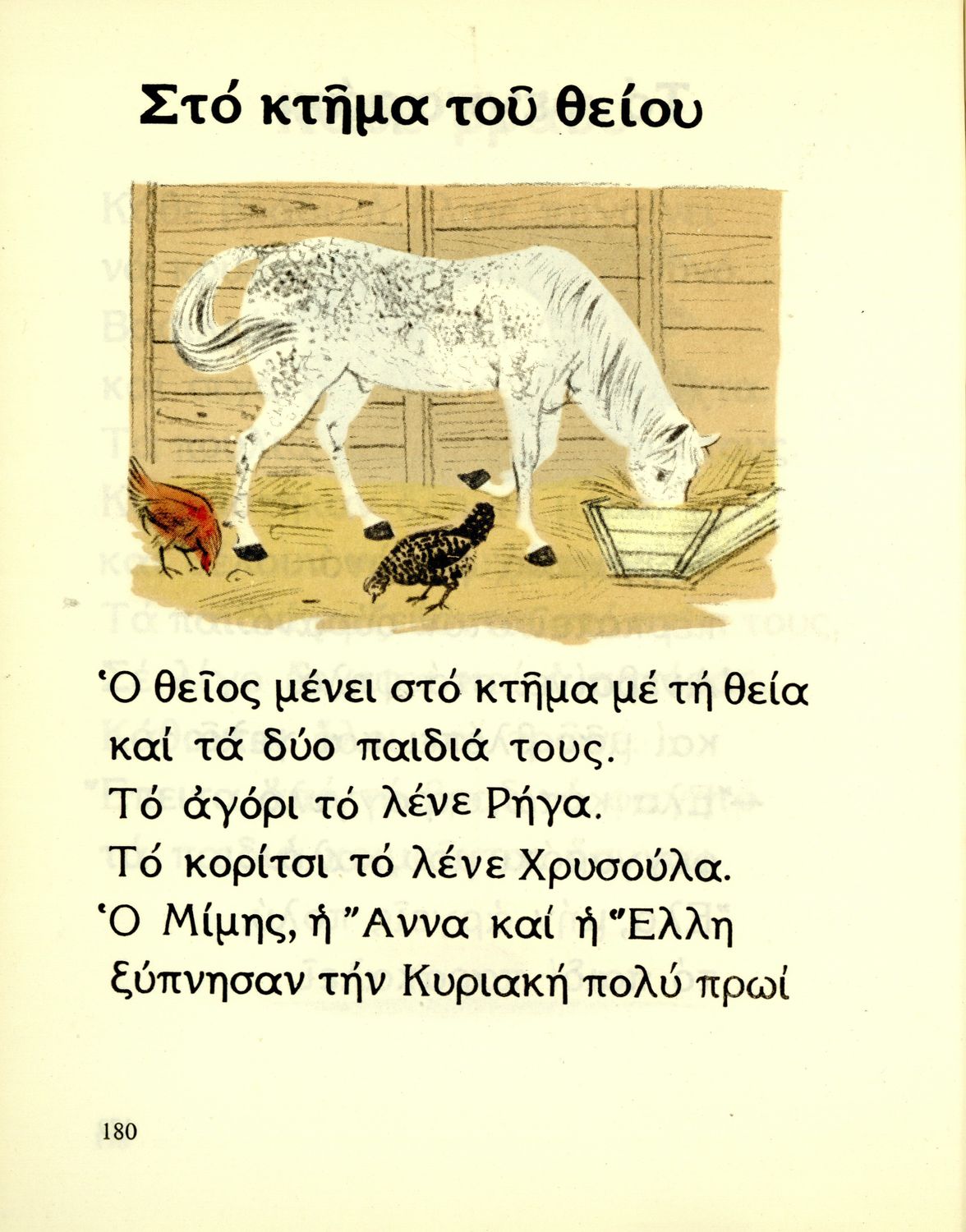Αναγνωστικό Α΄ Δημοτικού που περιέχει γράμματα, συλλαβές, λέξεις, προτάσεις, κείμενα και ποιήματα για την εκμάθηση της Γλώσσας. Τα θέματα βασίζονται στην θρησκευτική, εθνική, οικογενειακή, κοινωνική, καθημερινή ζωή του τόπου. Ήρωες του βιβλίου ο Μίμης και η Άννα.