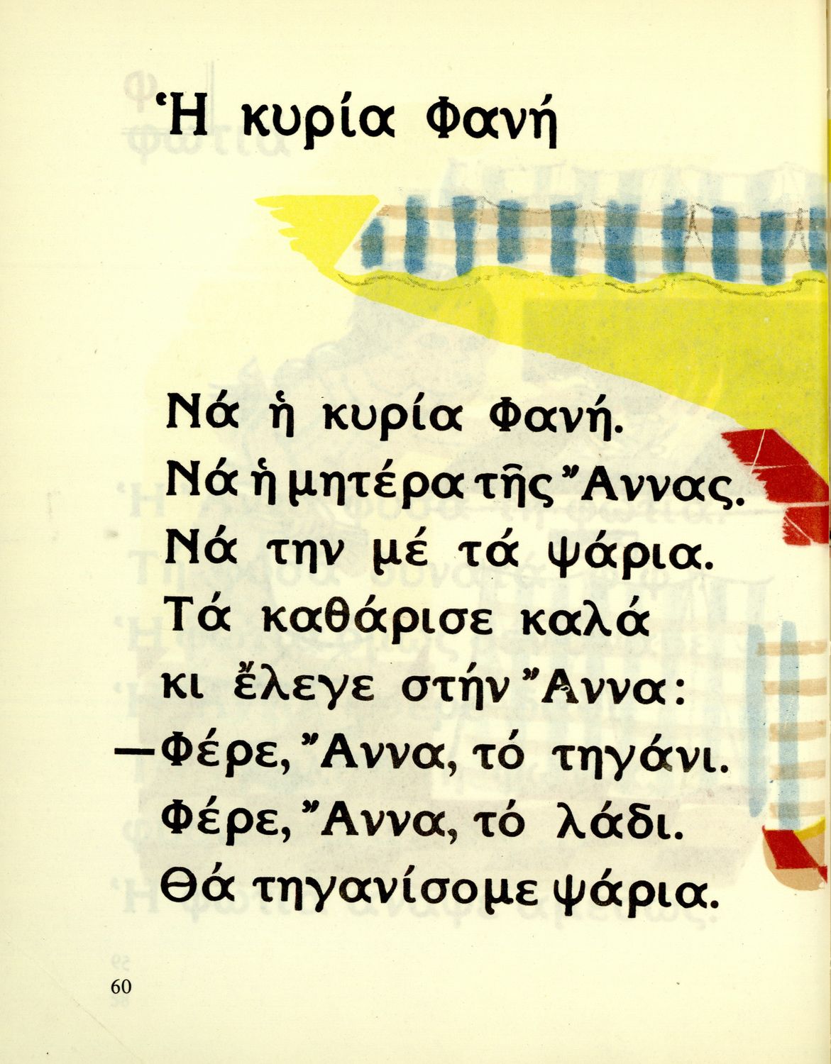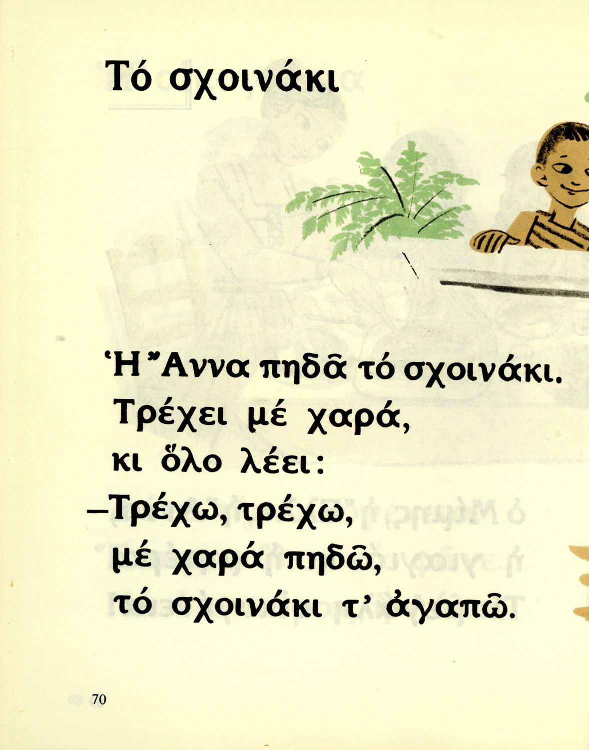 Αναγνωστικό Α΄ Δημοτικού που περιέχει γράμματα, συλλαβές, λέξεις, προτάσεις, κείμενα και ποιήματα για την εκμάθηση της Γλώσσας. Τα θέματα βασίζονται στην θρησκευτική, εθνική, οικογενειακή, κοινωνική, καθημερινή ζωή του τόπου. Ήρωες του βιβλίου ο Μίμης και η Άννα.