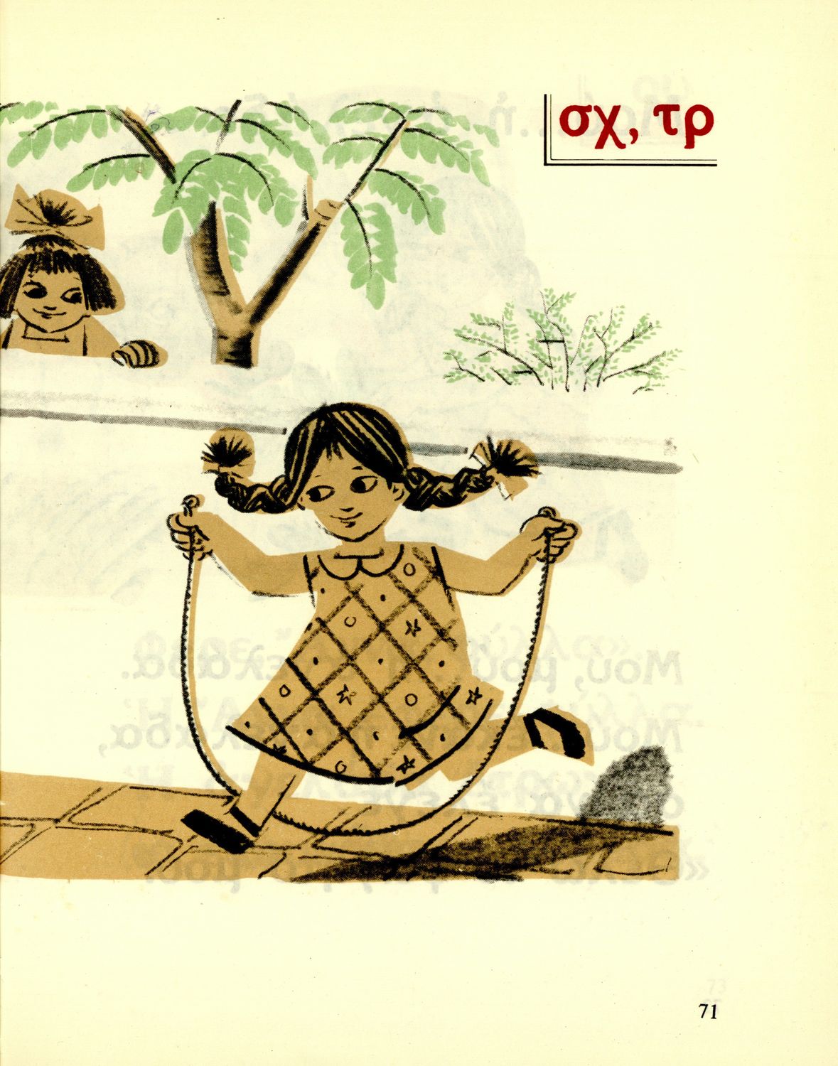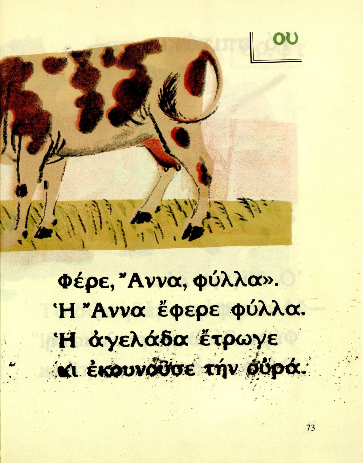 520 ## _aΑναγνωστικό Α΄ Δημοτικού που περιέχει γράμματα, συλλαβές, λέξεις, προτάσεις, κείμενα και ποιήματα για την εκμάθηση της Γλώσσας. Τα θέματα βασίζονται στην θρησκευτική, εθνική, οικογενειακή, κοινωνική, καθημερινή ζωή του τόπου. Ήρωες του βιβλίου ο Μίμης και η Άννα.