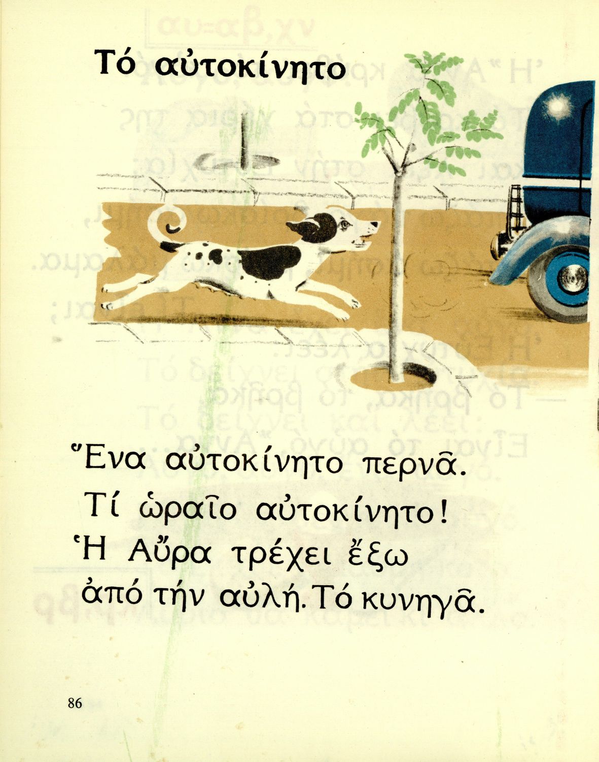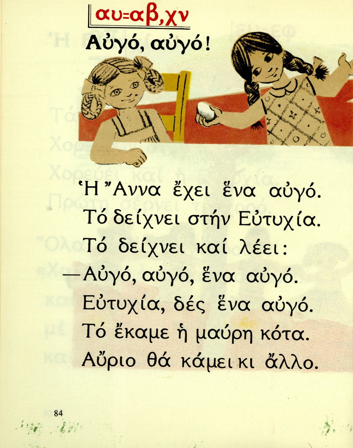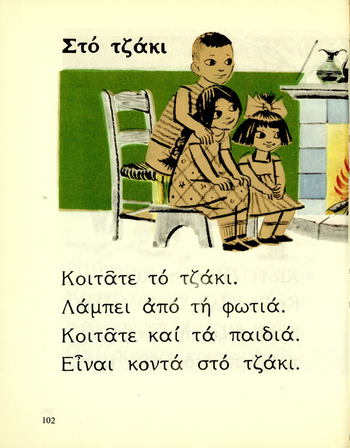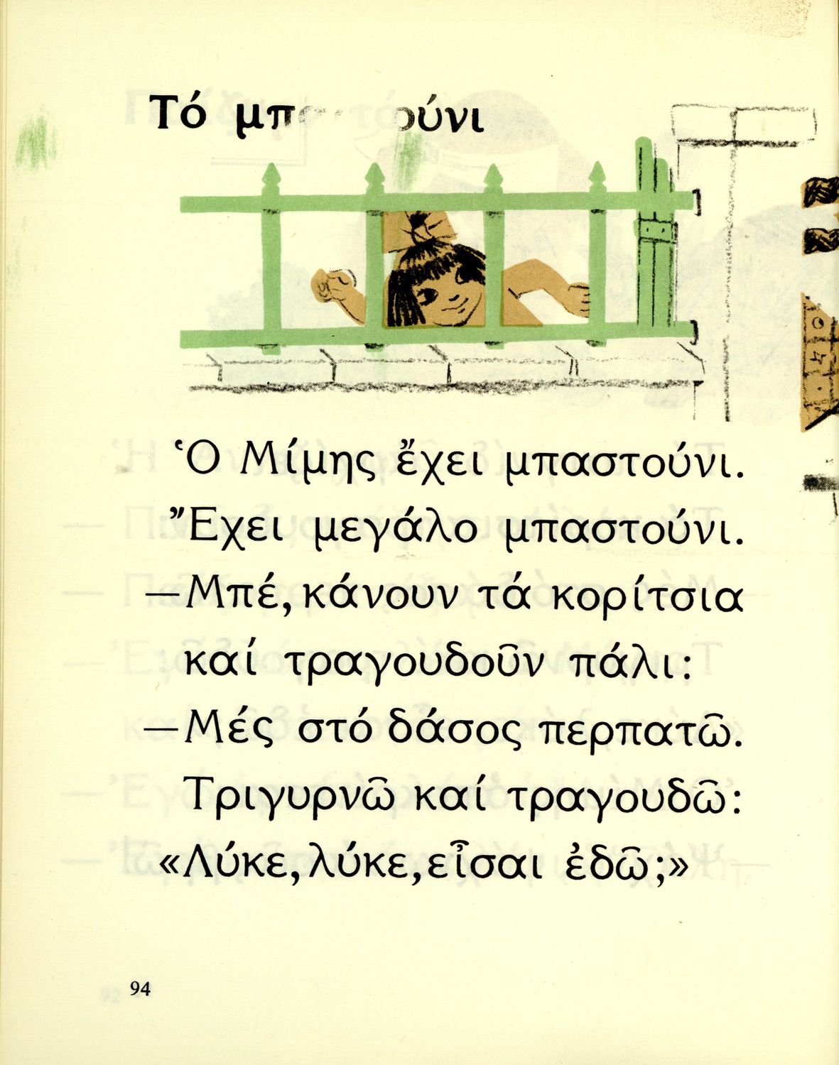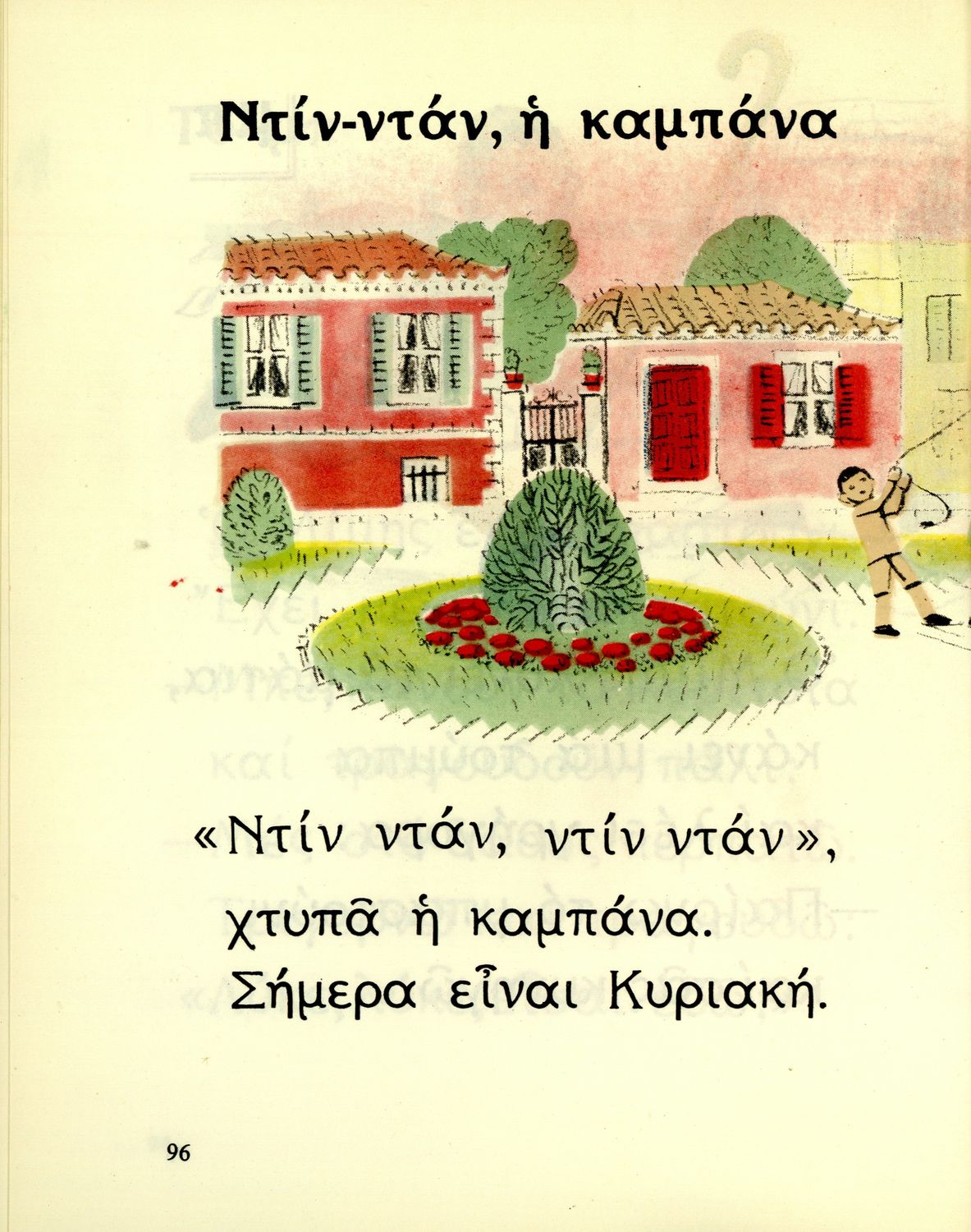 Αναγνωστικό Α΄ Δημοτικού που περιέχει γράμματα, συλλαβές, λέξεις, προτάσεις και κείμενα εμπνευσμένα από την οικογενειακή και κοινωνική ζωή του τόπου. Φέρει το σύμβολο της δικτατορίας.
