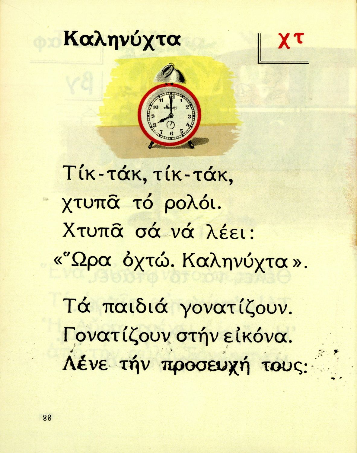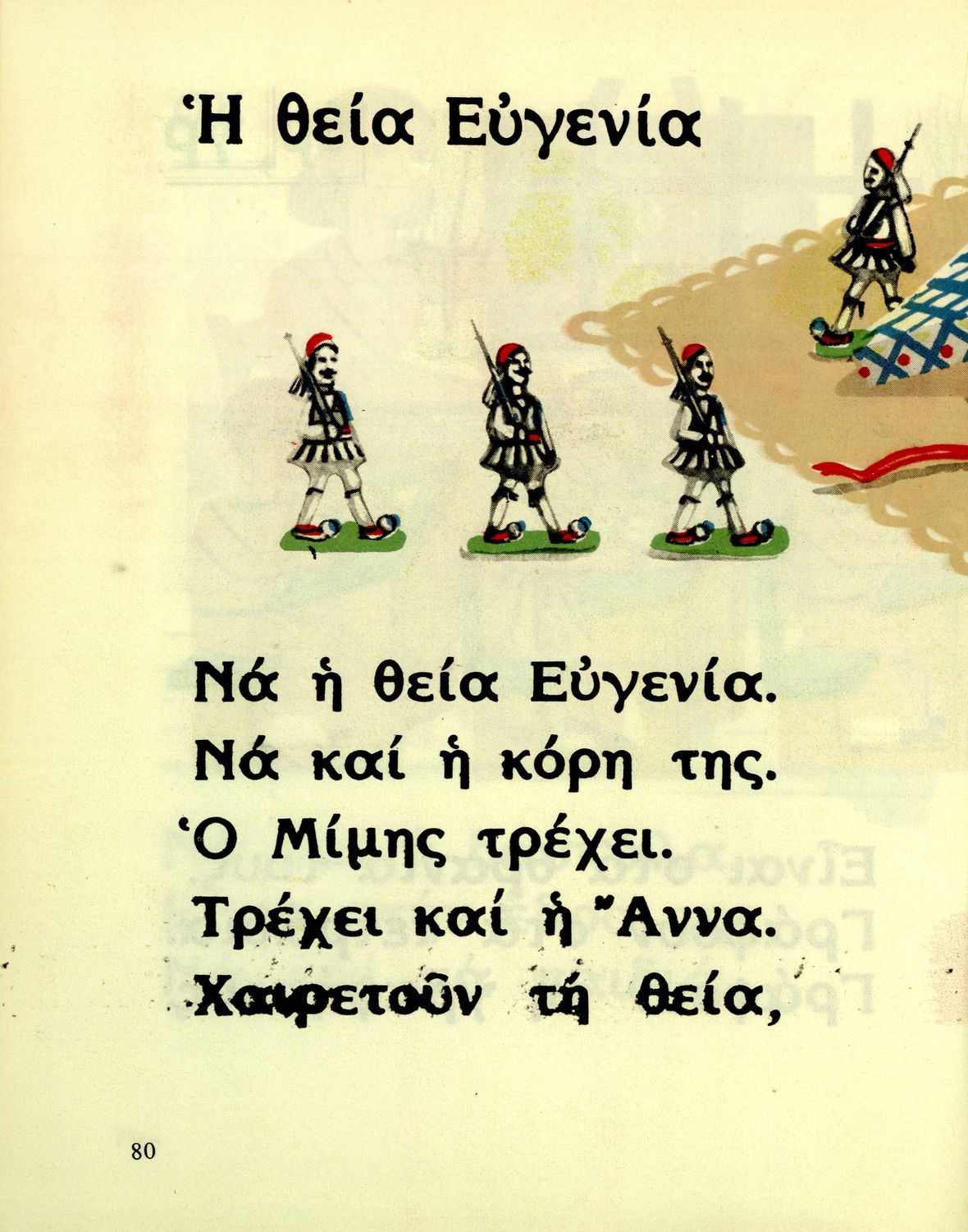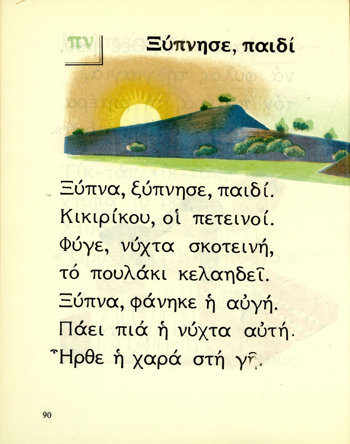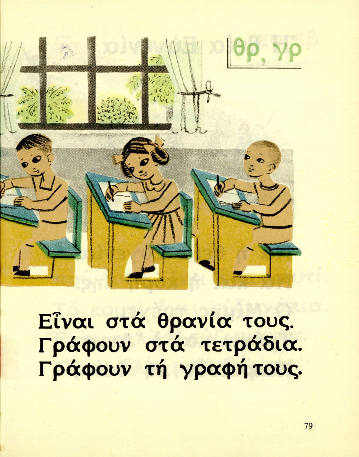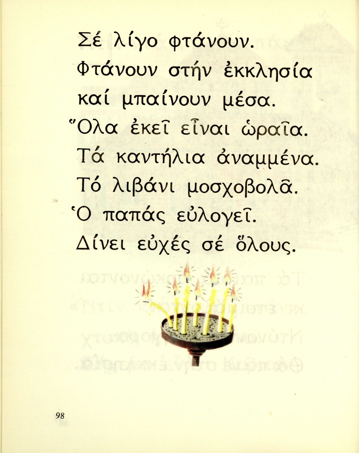 Αναγνωστικό Α΄ Δημοτικού που περιέχει γράμματα, συλλαβές, λέξεις, προτάσεις και κείμενα εμπνευσμένα από την οικογενειακή και κοινωνική ζωή του τόπου. Φέρει το σύμβολο της δικτατορίας.