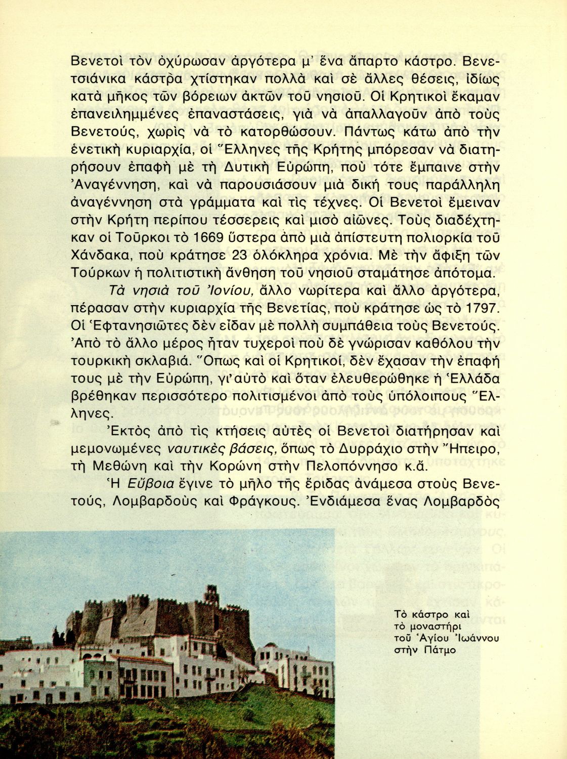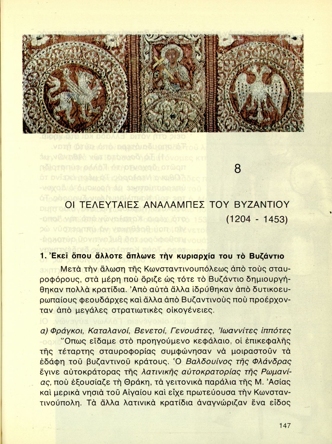 Σχολικό εγχειρίδιο για την Ε΄ Δημοτικού για το μάθημα της Ιστορίας. Το εγχειρίδιο περιλαμβάνει εισαγωγικές γνώσεις για την διαίρεση της ιστορίας και τον υπολογισμό του ιστορικού χρόνου. Το κύριο μέρος του βιβλίου χωρίζεται σε δύο μέρη. Το πρώτο μέρος ασχολείται με τη ρωμαϊκή ιστορία, την ρωμαϊκή αυτοκρατορία, τους Έλληνες και την διάδοση του χριστιανισμού. Το δεύτερο μέρος εμπεριέχει την βυζαντινή ιστορία, όπου εκεί σχολιάζονται τα έργα των Βυζαντινών αυτοκρατόρων από του Μ. Κωνσταντίνου κ.ε., η δυναστεία των Ισαύρων, η Μακεδονική Ηγεμονία, οι Σταυροφορίες, η άλωση, η Ευρώπη, ο μεσαίωνας κα η αναγέννηση.