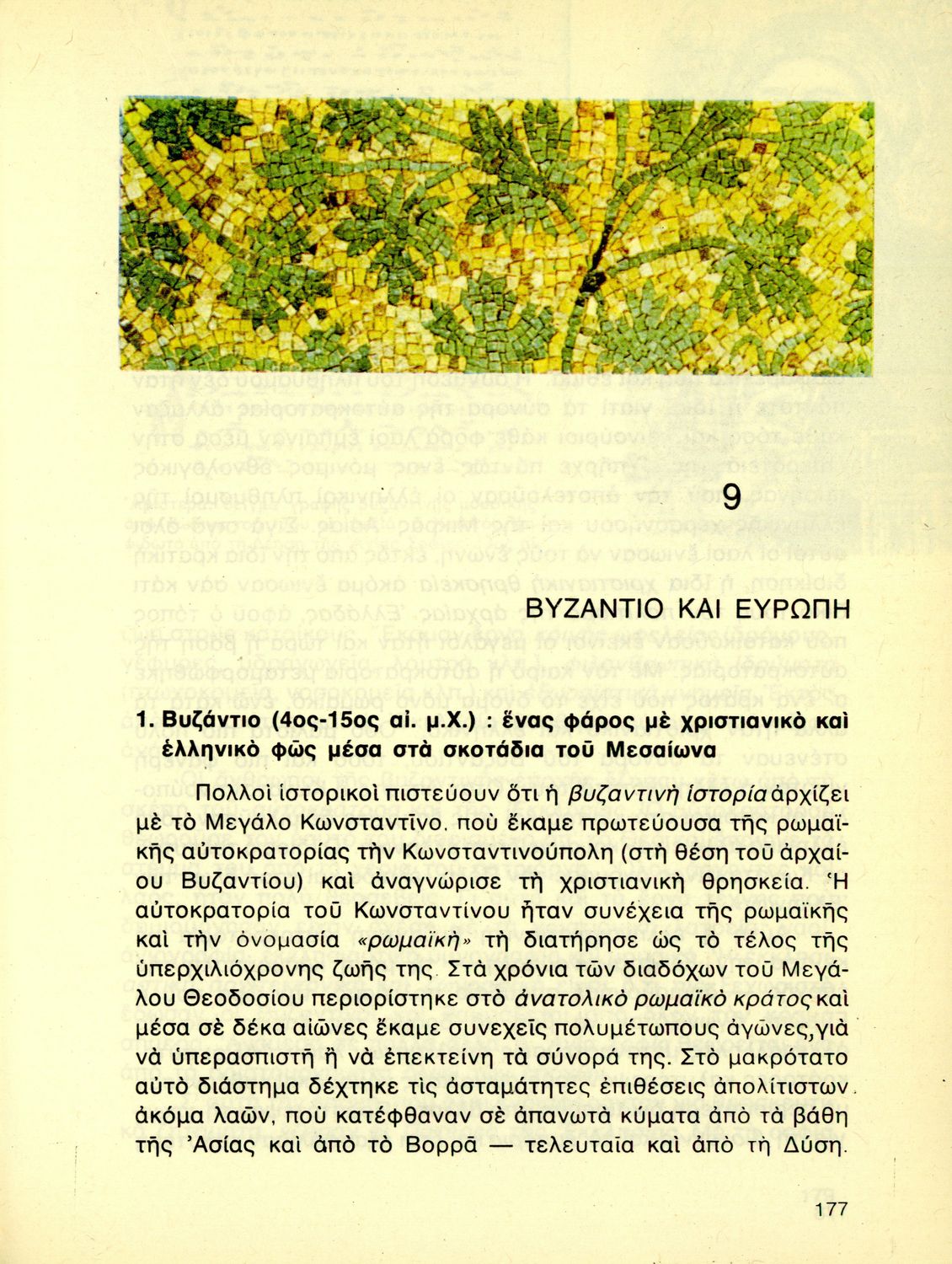 Σχολικό εγχειρίδιο για την Ε΄ Δημοτικού για το μάθημα της Ιστορίας. Το εγχειρίδιο περιλαμβάνει εισαγωγικές γνώσεις για την διαίρεση της ιστορίας και τον υπολογισμό του ιστορικού χρόνου. Το κύριο μέρος του βιβλίου χωρίζεται σε δύο μέρη. Το πρώτο μέρος ασχολείται με τη ρωμαϊκή ιστορία, την ρωμαϊκή αυτοκρατορία, τους Έλληνες και την διάδοση του χριστιανισμού. Το δεύτερο μέρος εμπεριέχει την βυζαντινή ιστορία, όπου εκεί σχολιάζονται τα έργα των Βυζαντινών αυτοκρατόρων από του Μ. Κωνσταντίνου κ.ε., η δυναστεία των Ισαύρων, η Μακεδονική Ηγεμονία, οι Σταυροφορίες, η άλωση, η Ευρώπη, ο μεσαίωνας κα η αναγέννηση.