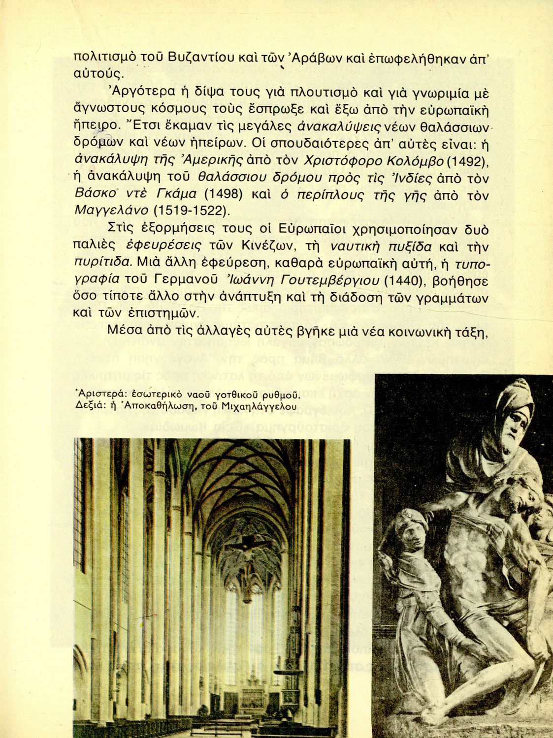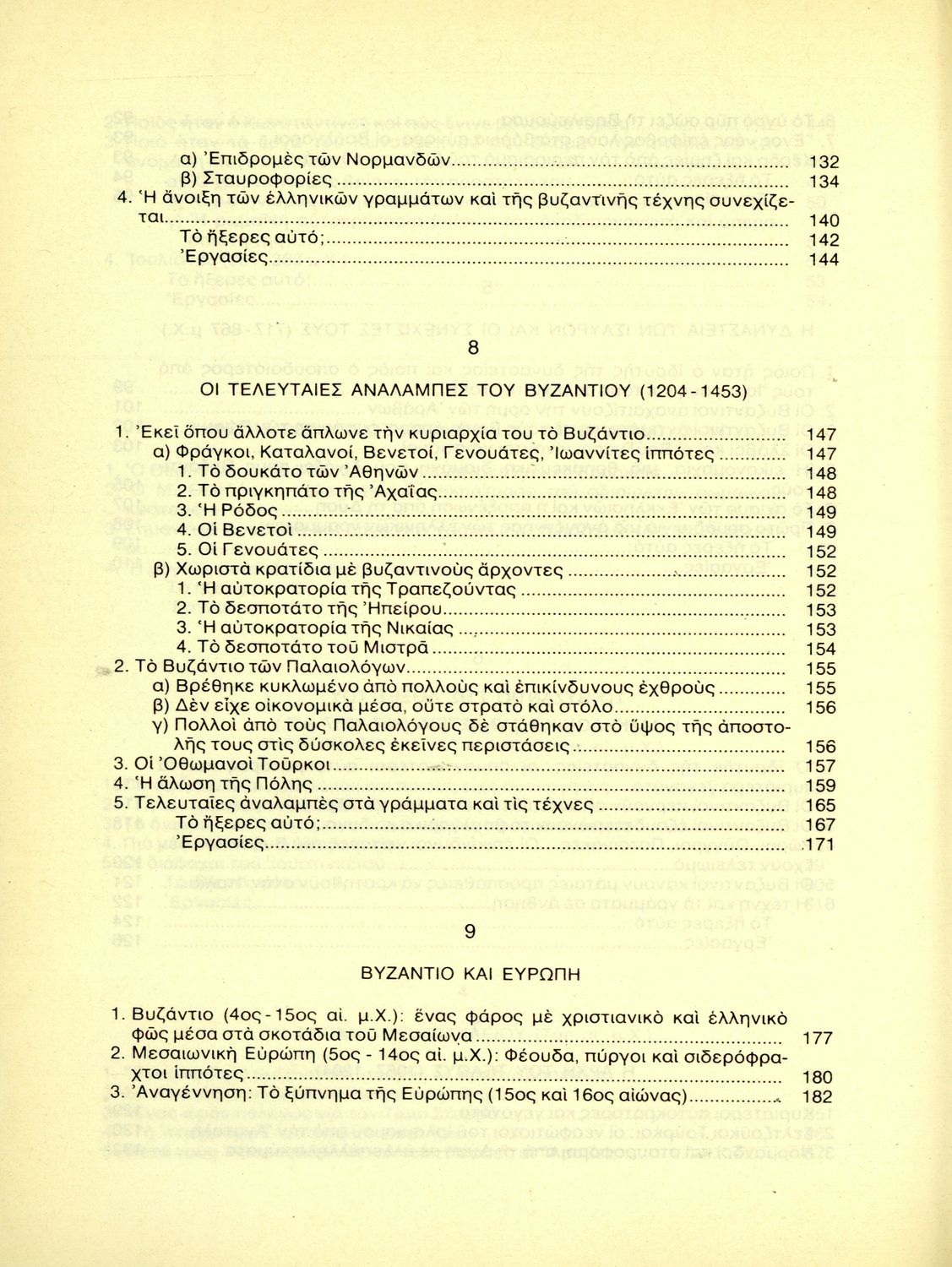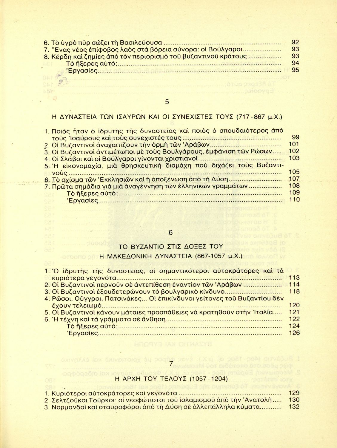 520 ## _aΣχολικό εγχειρίδιο για την Ε΄ Δημοτικού για το μάθημα της Ιστορίας. Το εγχειρίδιο περιλαμβάνει εισαγωγικές γνώσεις για την διαίρεση της ιστορίας και τον υπολογισμό του ιστορικού χρόνου. Το κύριο μέρος του βιβλίου χωρίζεται σε δύο μέρη. Το πρώτο μέρος ασχολείται με τη ρωμαϊκή ιστορία, την ρωμαϊκή αυτοκρατορία, τους Έλληνες και την διάδοση του χριστιανισμού. Το δεύτερο μέρος εμπεριέχει την βυζαντινή ιστορία, όπου εκεί σχολιάζονται τα έργα των Βυζαντινών αυτοκρατόρων από του Μ. Κωνσταντίνου κ.ε., η δυναστεία των Ισαύρων, η Μακεδονική Ηγεμονία, οι Σταυροφορίες, η άλωση, η Ευρώπη, ο μεσαίωνας κα η αναγέννηση.