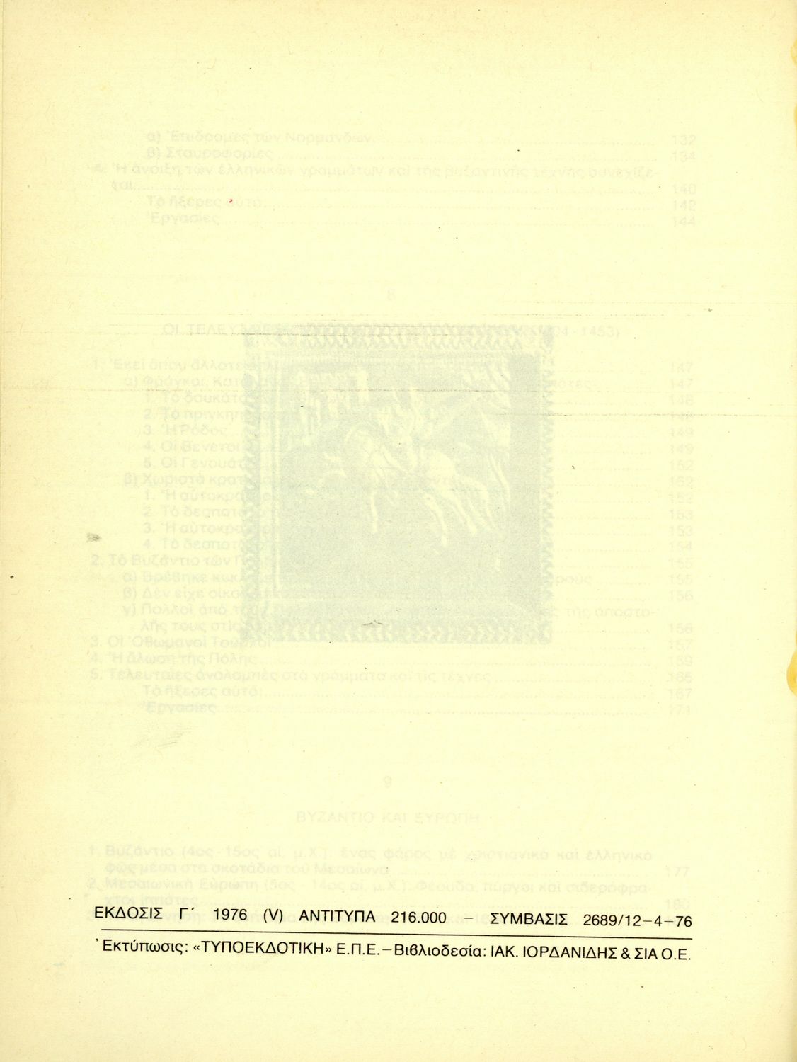 Εκδότης: Οργανισμός Εκδόσεως Διδακτικών Βιβλίων Έτος έκδοσης: 1976 Τόπος έκδοσης: Αθήνα Έκδοση: 3η Υπουργική απόφαση / Σύμβαση: 2689/ 12-4-1976 Έτος έγκρισης: 1976 |
