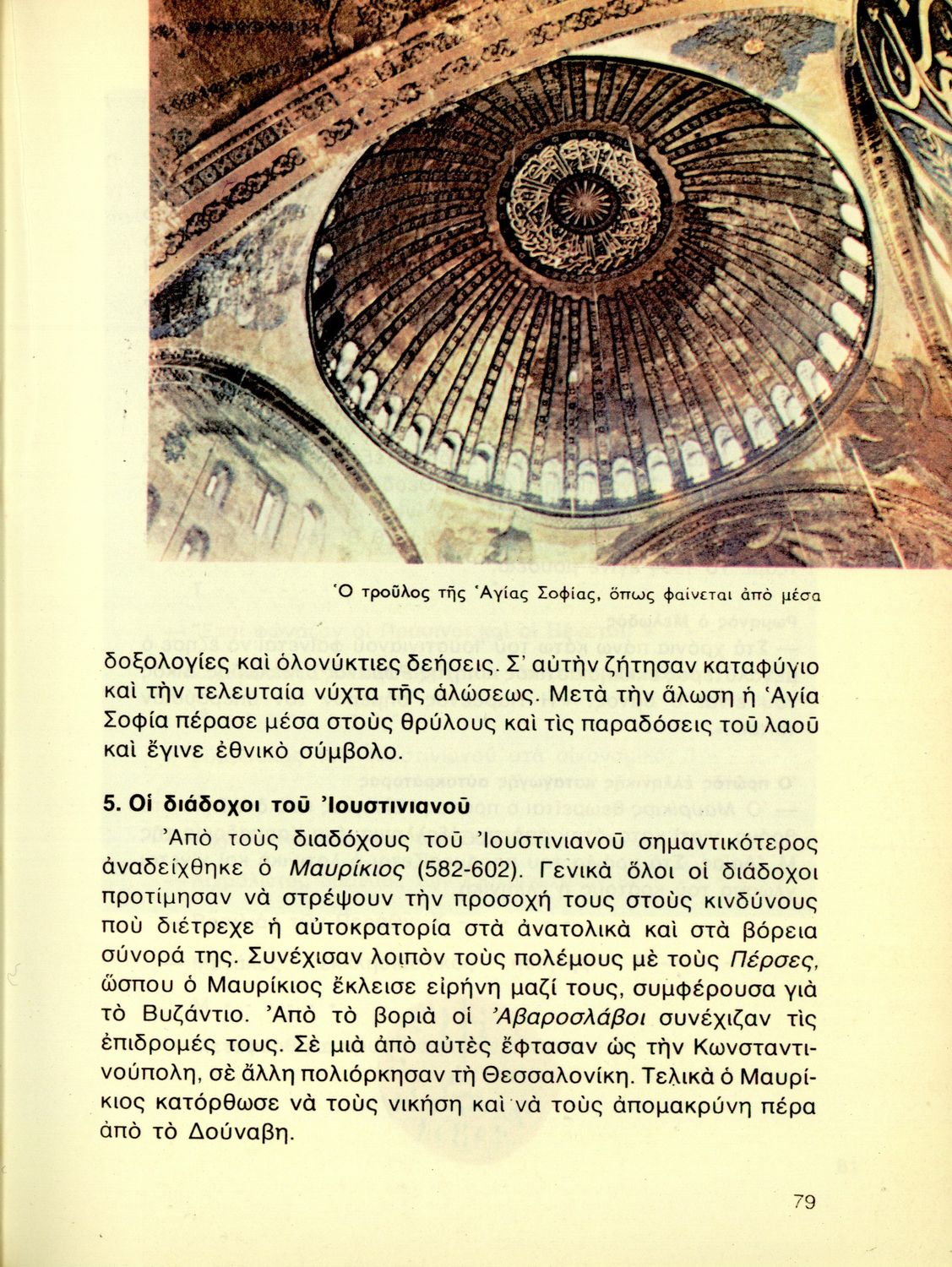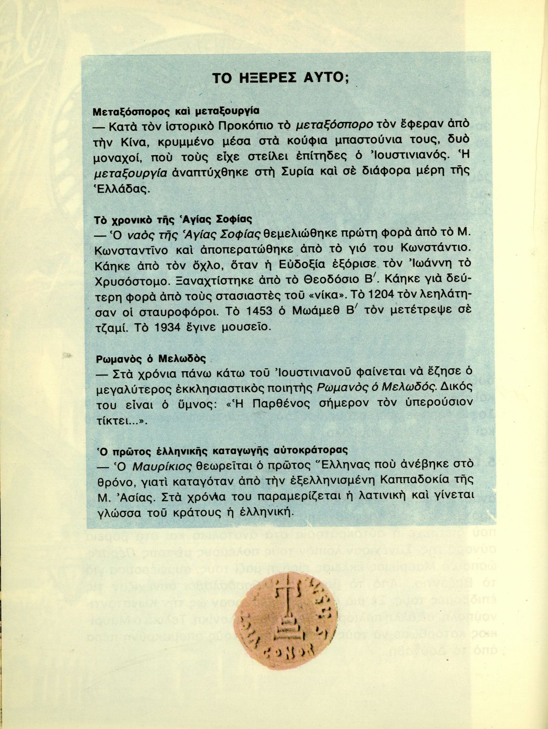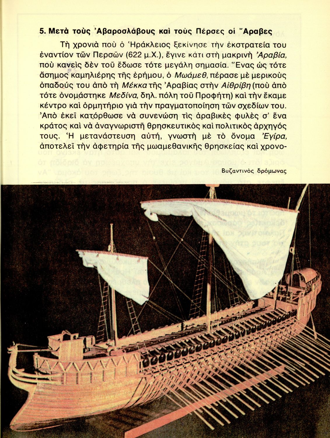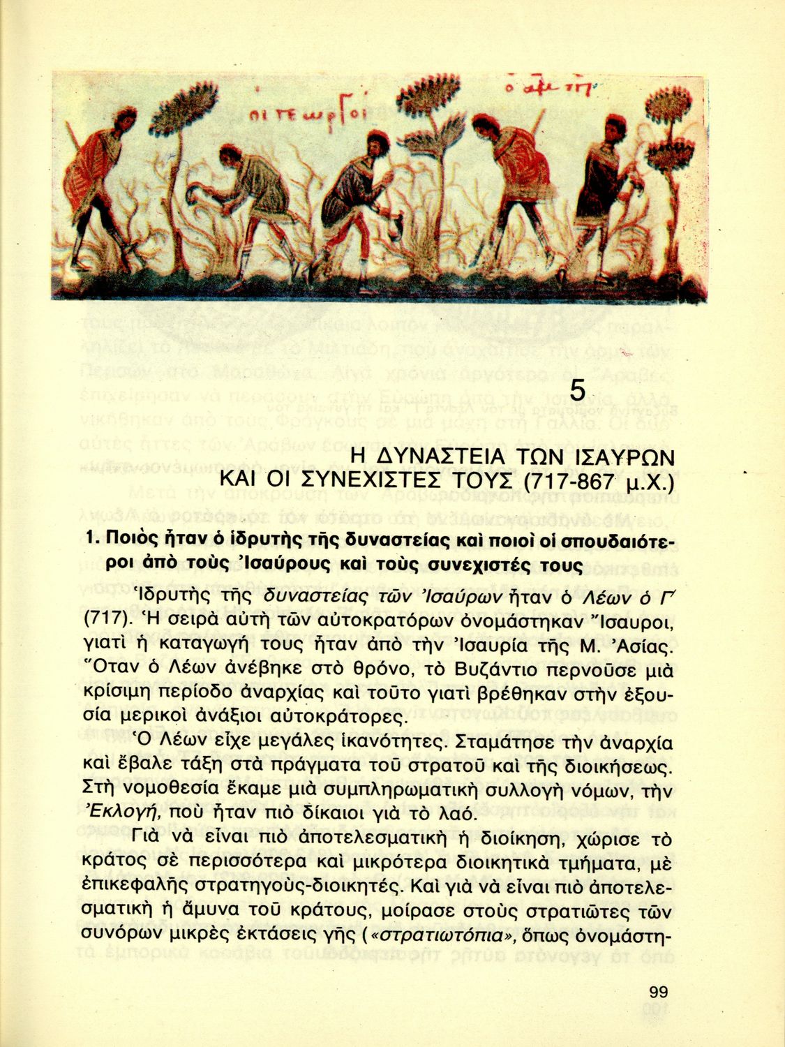 Σχολικό εγχειρίδιο για την Ε΄ Δημοτικού για το μάθημα της Ιστορίας. Το εγχειρίδιο περιλαμβάνει εισαγωγικές γνώσεις για την διαίρεση της ιστορίας και τον υπολογισμό του ιστορικού χρόνου. Το κύριο μέρος του βιβλίου χωρίζεται σε δύο μέρη. Το πρώτο μέρος ασχολείται με τη ρωμαϊκή ιστορία, την ρωμαϊκή αυτοκρατορία, τους Έλληνες και την διάδοση του χριστιανισμού. Το δεύτερο μέρος εμπεριέχει την βυζαντινή ιστορία, όπου εκεί σχολιάζονται τα έργα των Βυζαντινών αυτοκρατόρων από του Μ. Κωνσταντίνου κ.ε., η δυναστεία των Ισαύρων, η Μακεδονική Ηγεμονία, οι Σταυροφορίες, η άλωση, η Ευρώπη, ο μεσαίωνας κα η αναγέννηση.