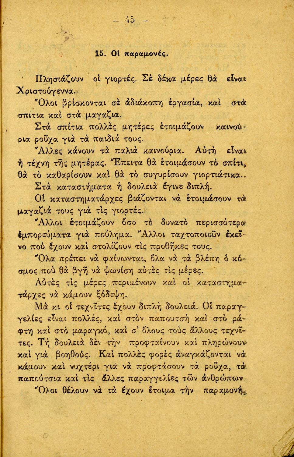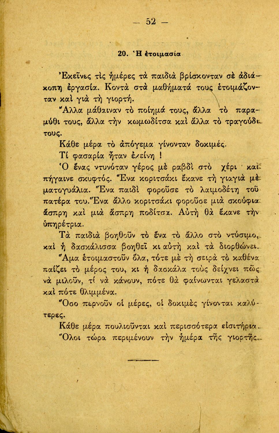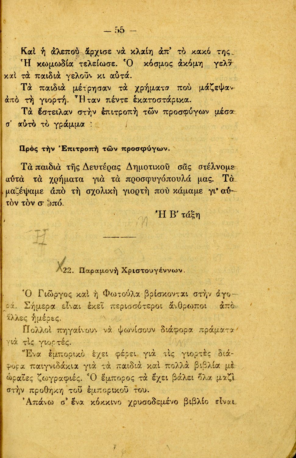 Σχολικό εγχειρίδιο Αρχαίων Ελληνικών Γυμνασίου που περιέχει κείμενα βασισμένα στην αρχαία ελληνική ιστορία και μυθολογία και γραμματικές, συντακτικές και ετυμολογικές παρατηρήσεις.