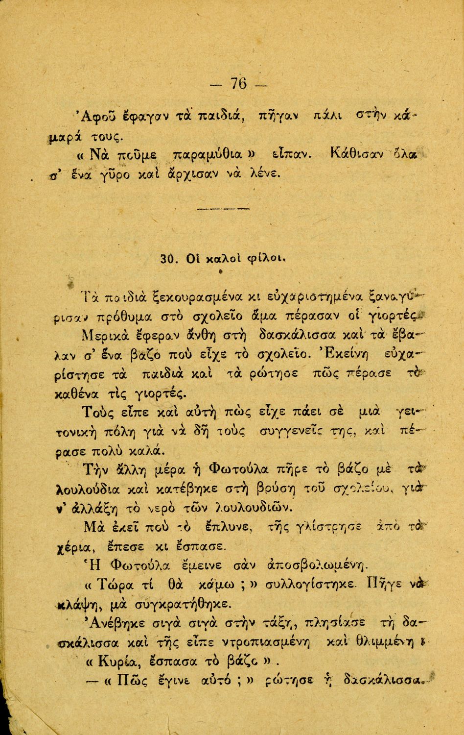 Βαθμίδα εκπαίδευσης: Δευτεροβάθμια Τάξη: Γυμνάσιο Μάθημα: Αρχαία Ελληνικά Γλώσσα: Καθαρεύουσα Παρουσίαση περιεχομένου: Σχολικό εγχειρίδιο Αρχαίων Ελληνικών Γυμνασίου που περιέχει κείμενα βασισμένα στην αρχαία ελληνική ιστορία και μυθολογία και γραμματικές, συντακτικές και ετυμολογικές παρατηρήσεις. |