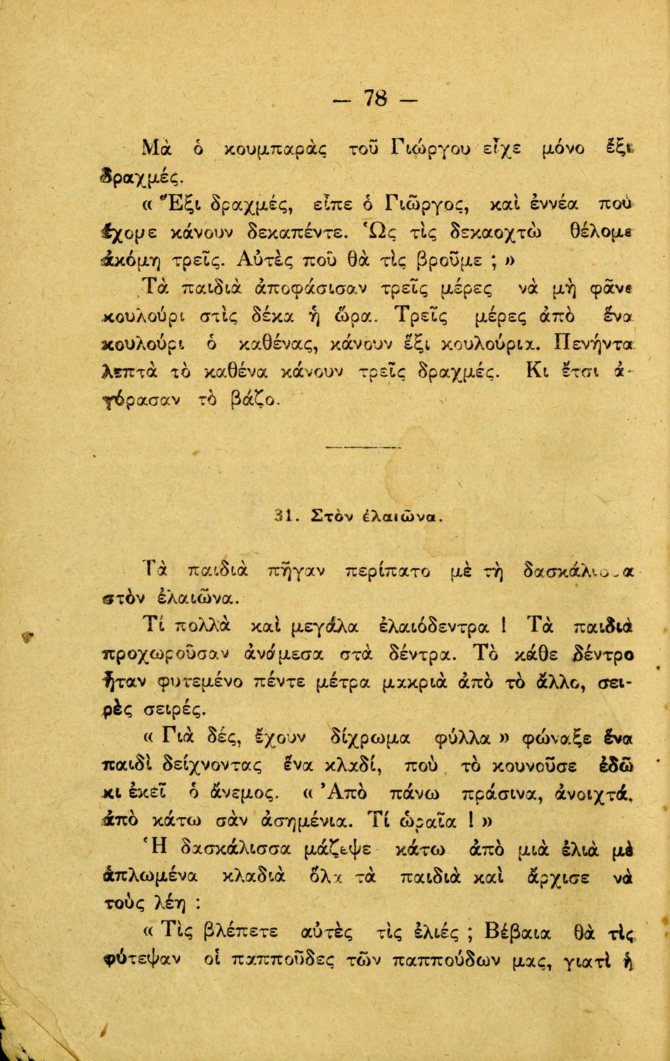 Σχολικό εγχειρίδιο Αρχαίων Ελληνικών Γυμνασίου που περιέχει κείμενα βασισμένα στην αρχαία ελληνική ιστορία και μυθολογία και γραμματικές, συντακτικές και ετυμολογικές παρατηρήσεις.