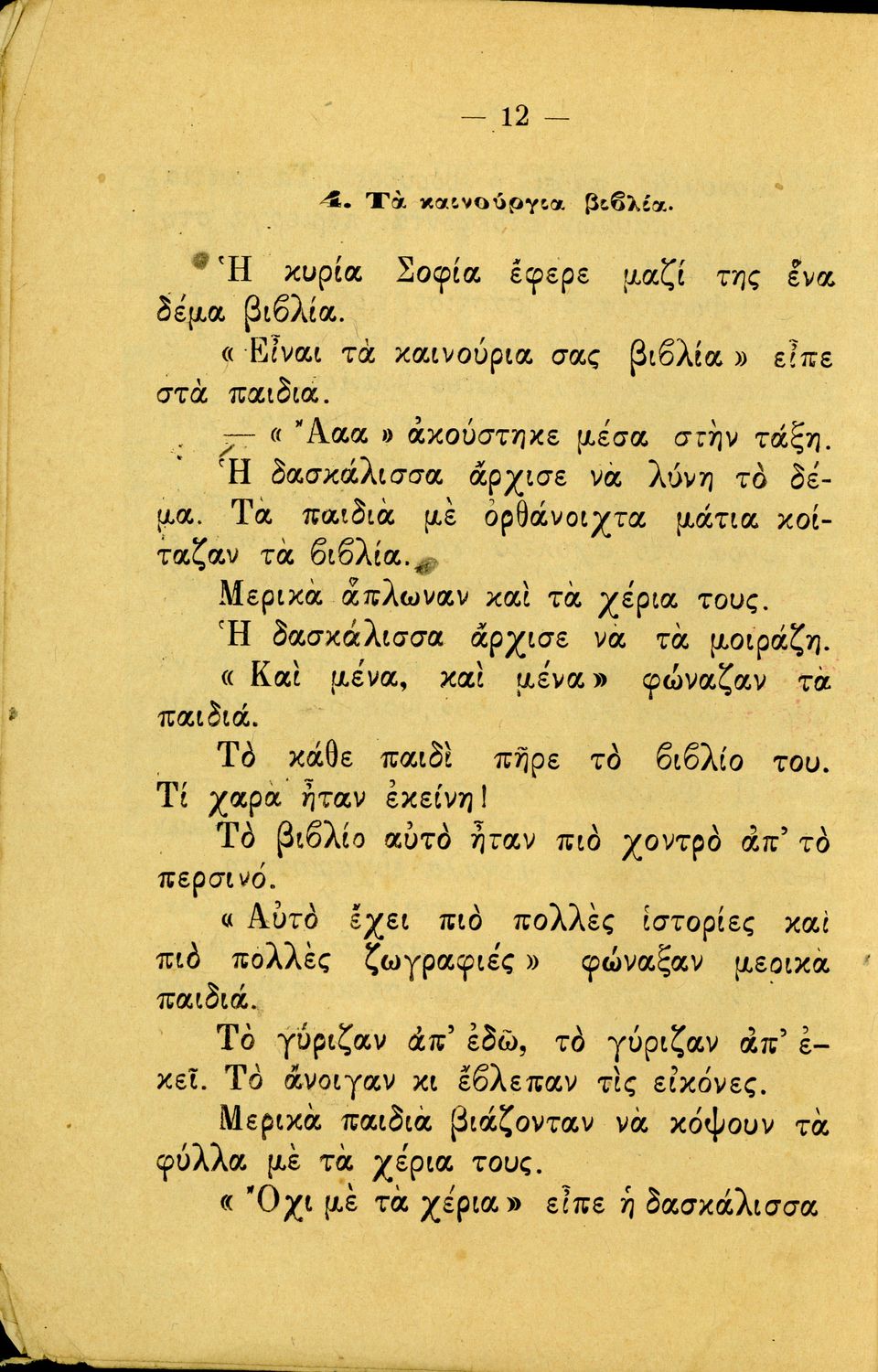 Σχολικό εγχειρίδιο Αρχαίων Ελληνικών Γυμνασίου που περιέχει κείμενα βασισμένα στην αρχαία ελληνική ιστορία και μυθολογία και γραμματικές, συντακτικές και ετυμολογικές παρατηρήσεις.