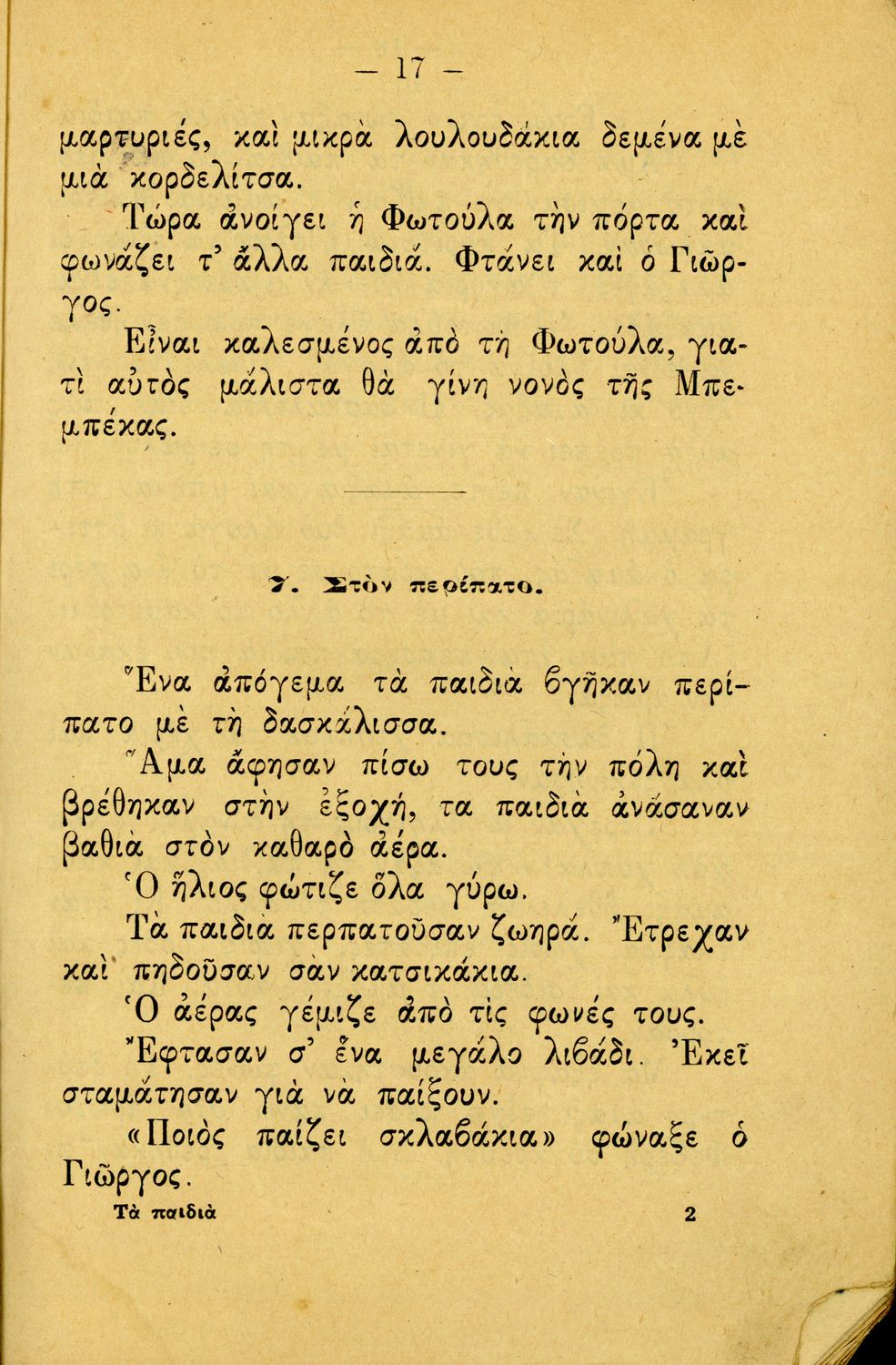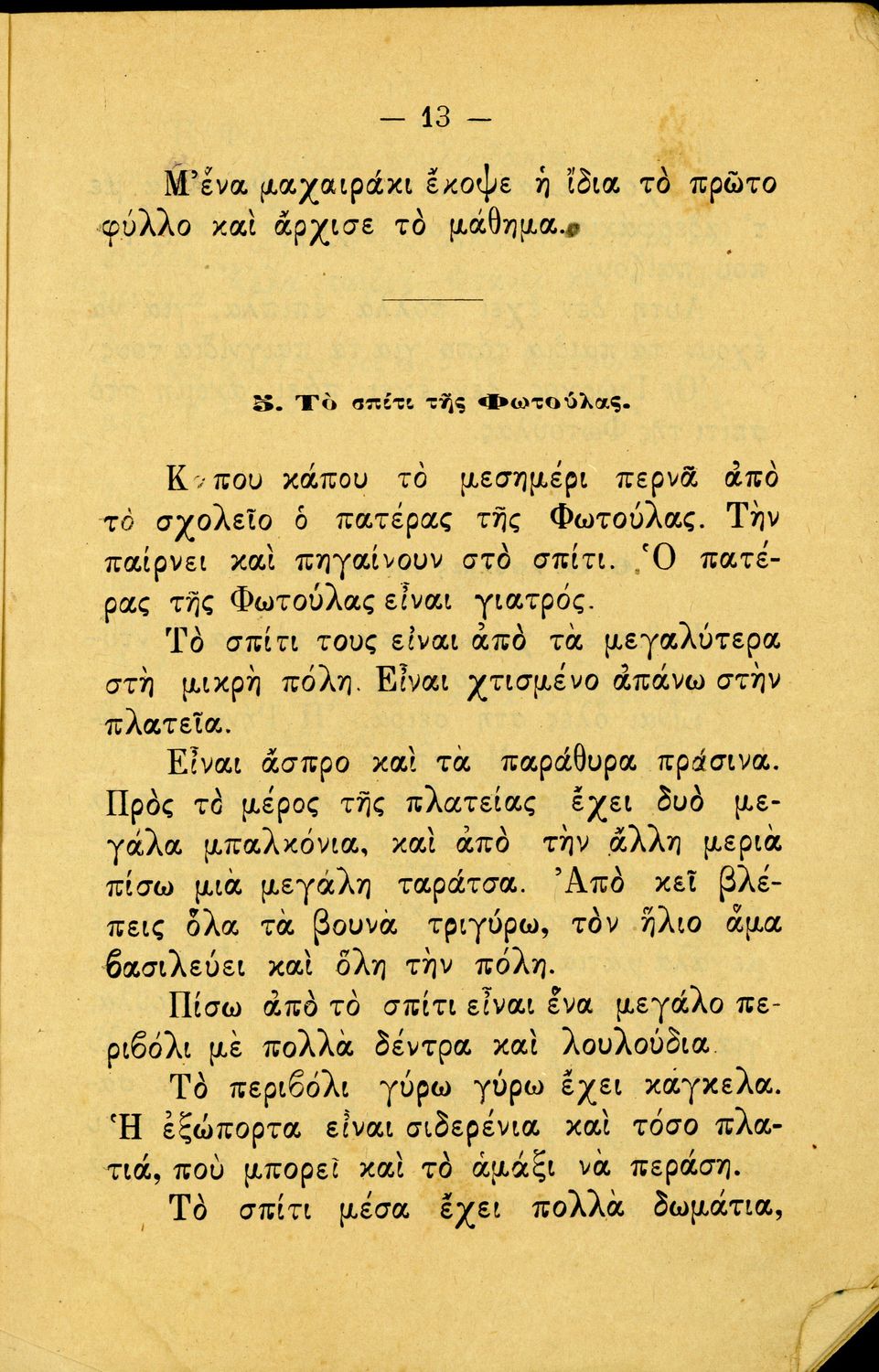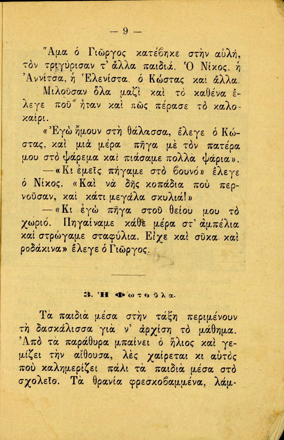 Βαθμίδα εκπαίδευσης: Δευτεροβάθμια Τάξη: Γυμνάσιο Μάθημα: Αρχαία Ελληνικά Γλώσσα: Καθαρεύουσα Παρουσίαση περιεχομένου: Σχολικό εγχειρίδιο Αρχαίων Ελληνικών Γυμνασίου που περιέχει κείμενα βασισμένα στην αρχαία ελληνική ιστορία και μυθολογία και γραμματικές, συντακτικές και ετυμολογικές παρατηρήσεις. |