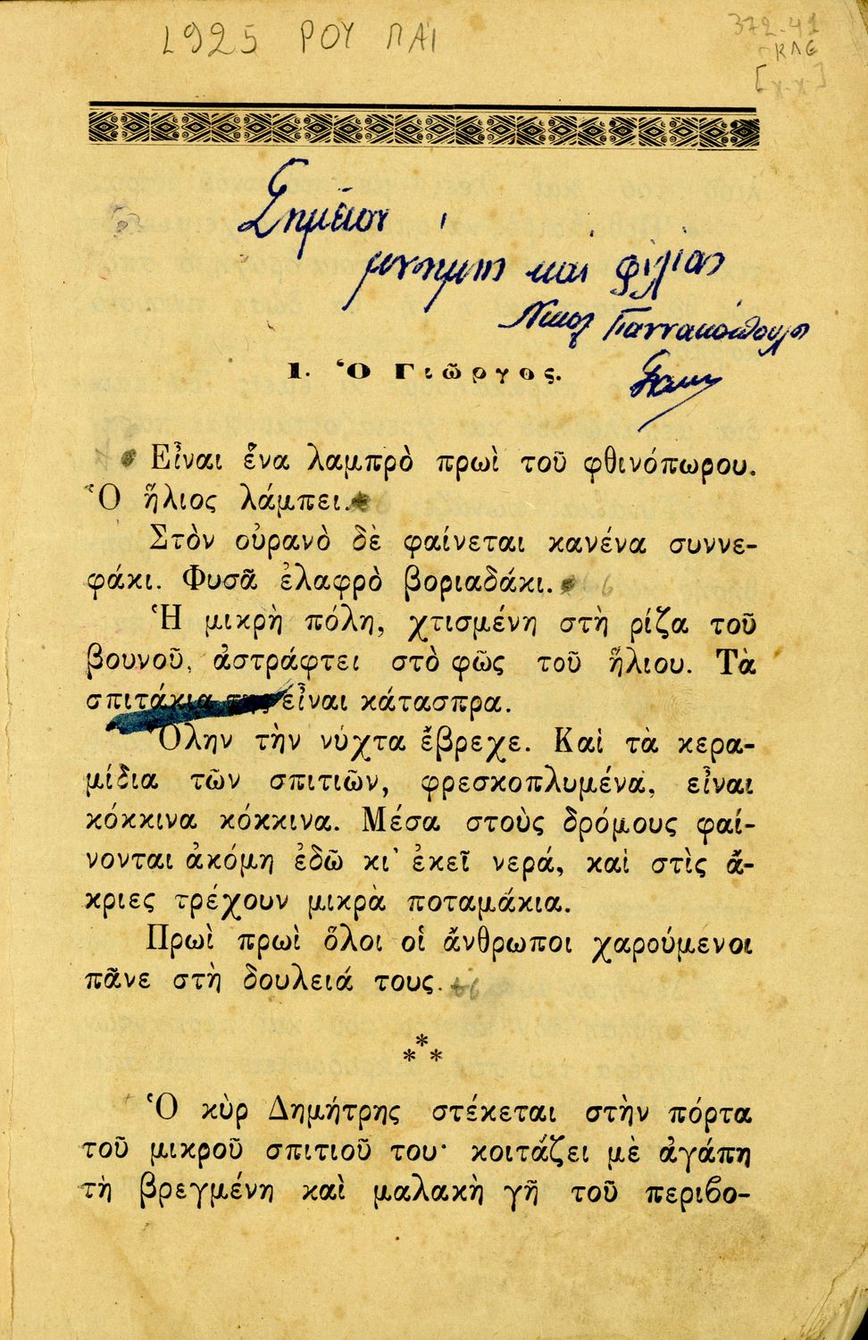 Εντοπισμός πρωτοτύπου: Ελληνικό Λογοτεχνικό και Ιστορικό Αρχείο Κωδικός βιβλιοθήκης: 1949 ΦΙΛ |