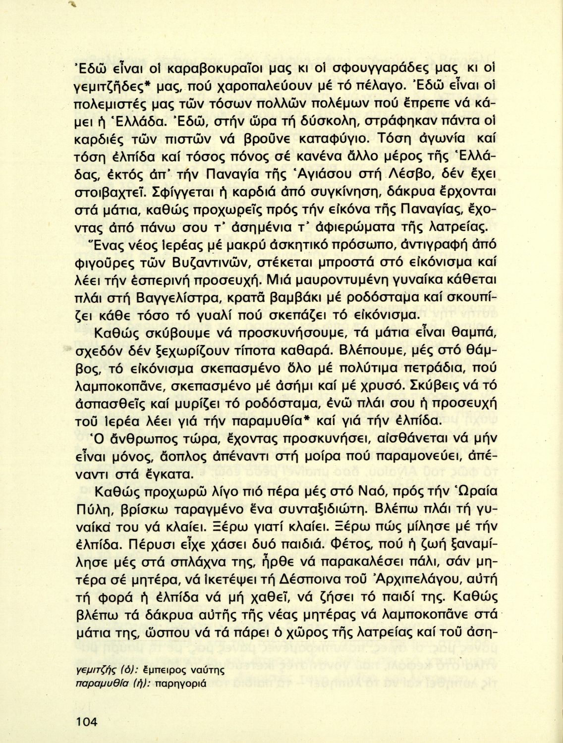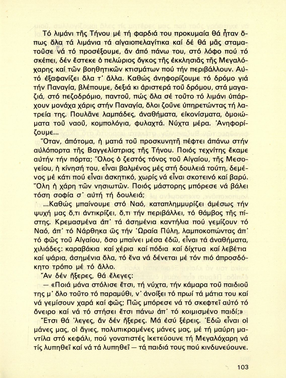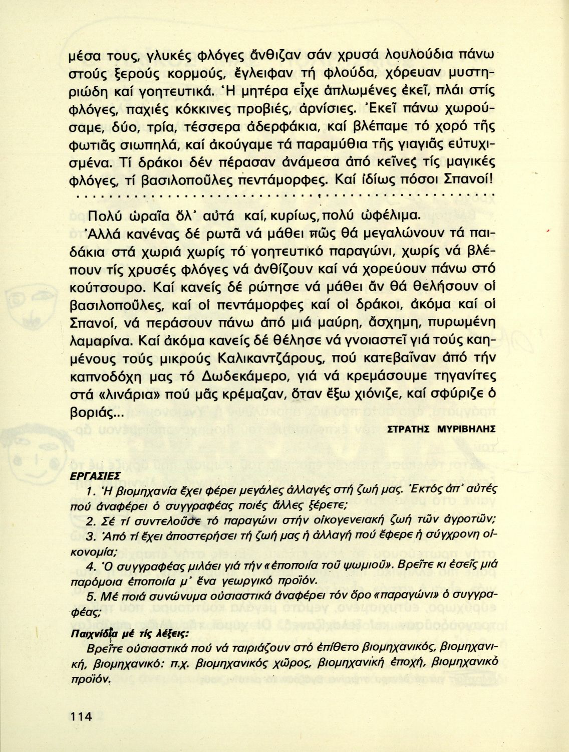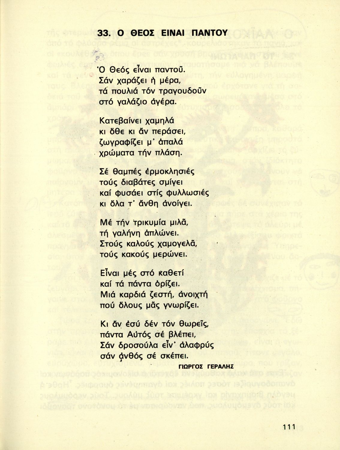 Αναγνωστικό ΣΤ΄ Δημοτικού που περιέχει πεζά και ποιήματα εμπνευσμένα από την κοινωνική, θρησκευτική και εθνική ζωή, την πολιτιστική κληρονομιά και τα ολυμπιακά ιδεώδη καθώς και από τις ασχολίες των ανθρώπων και τα προβλήματά τους.