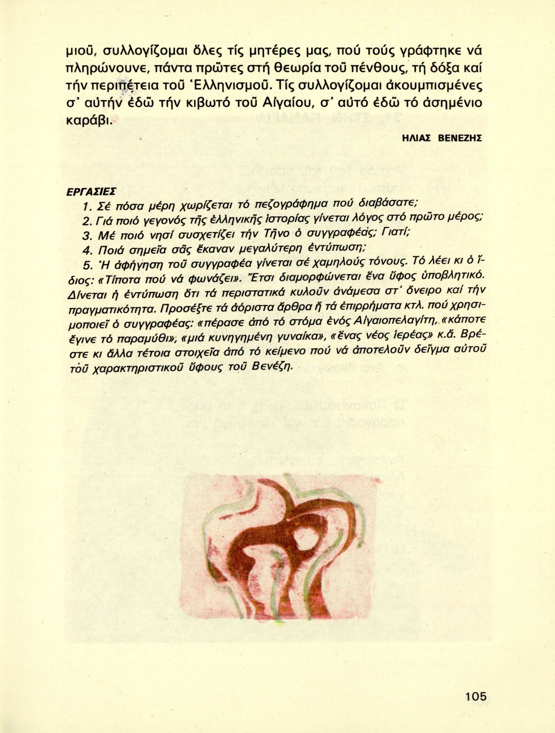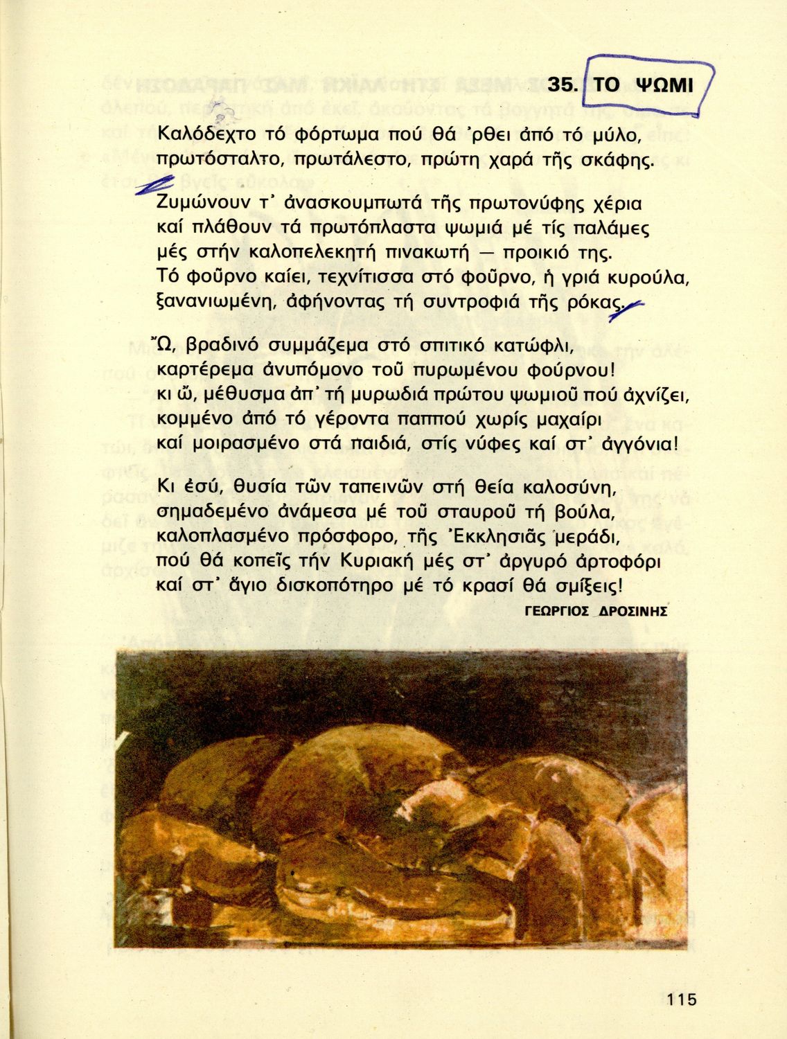 Αναγνωστικό ΣΤ΄ Δημοτικού που αντλεί τα θέματά του από τη θρησκευτική, εθνική, οικογενειακή, κοινωνική και επαγγελματική ζωή και την σύγχρονη ελληνική ιστορία. Φέρει το σύμβολο της δικτατορίας.