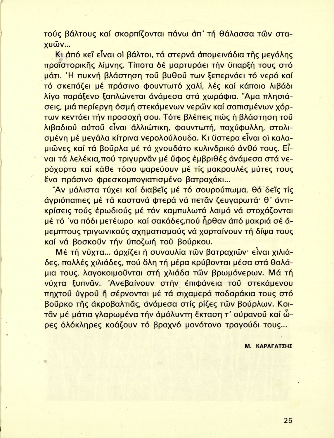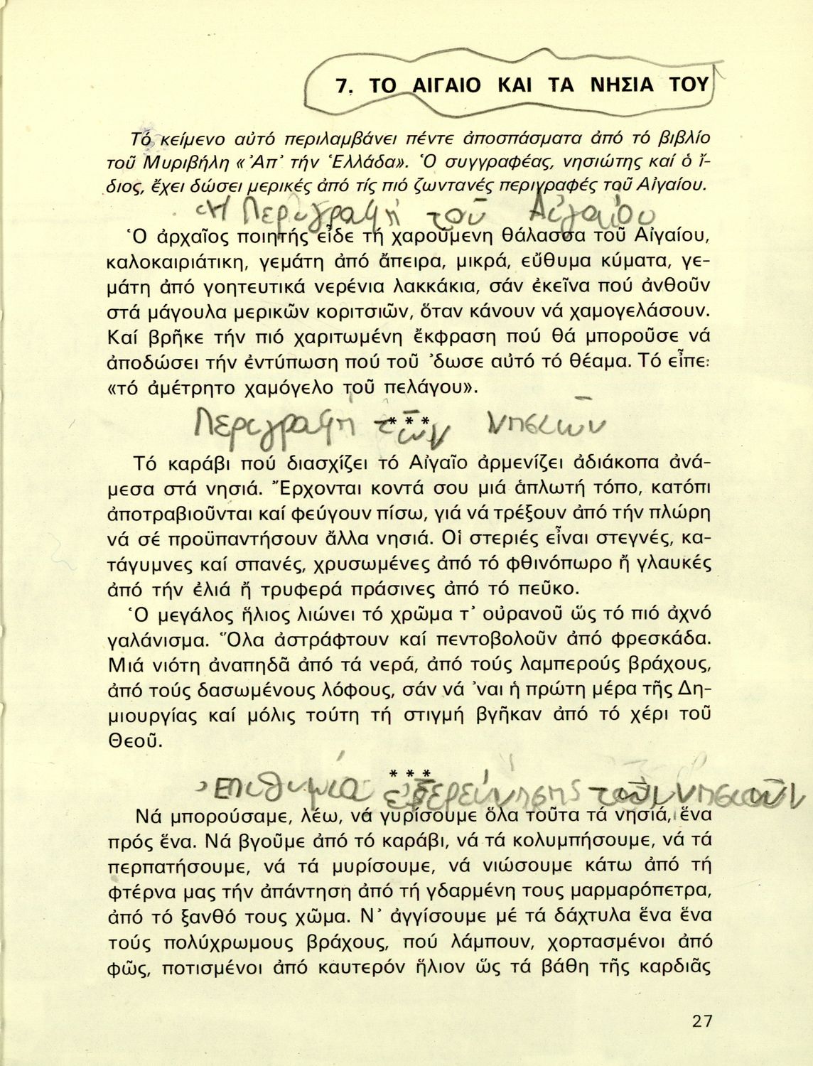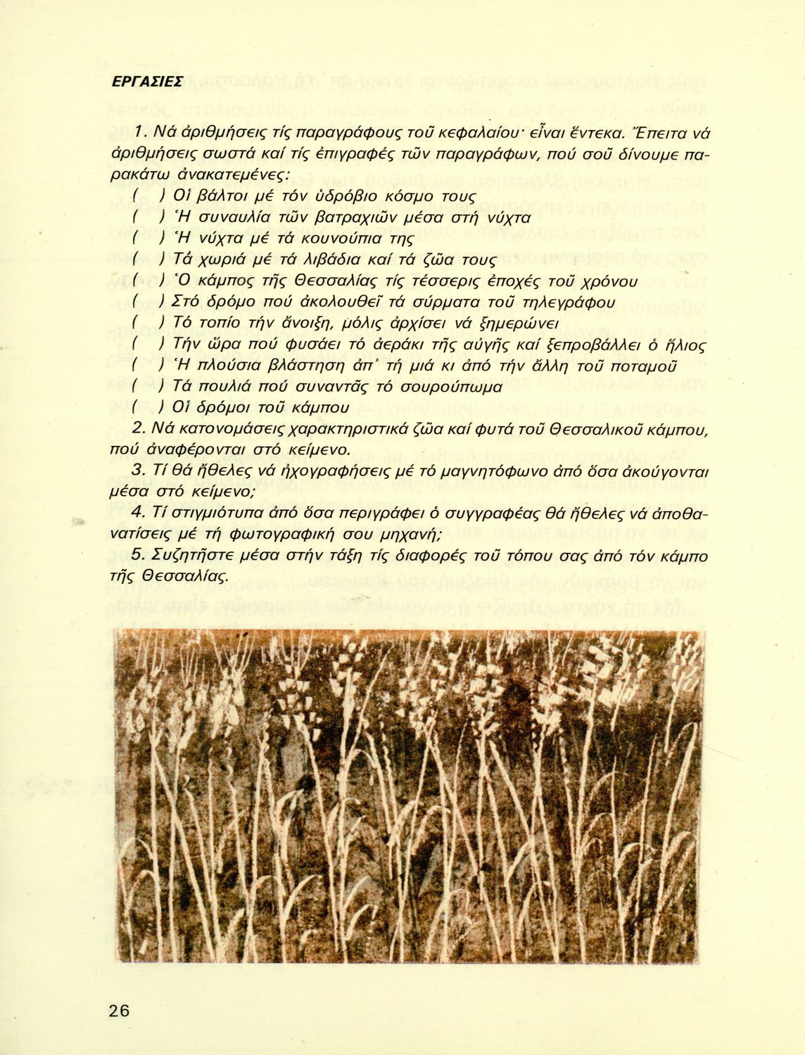 Αναγνωστικό ΣΤ΄ Δημοτικού που περιέχει πεζά και ποιήματα εμπνευσμένα από την κοινωνική, θρησκευτική και εθνική ζωή, την πολιτιστική κληρονομιά και τα ολυμπιακά ιδεώδη καθώς και από τις ασχολίες των ανθρώπων και τα προβλήματά τους.