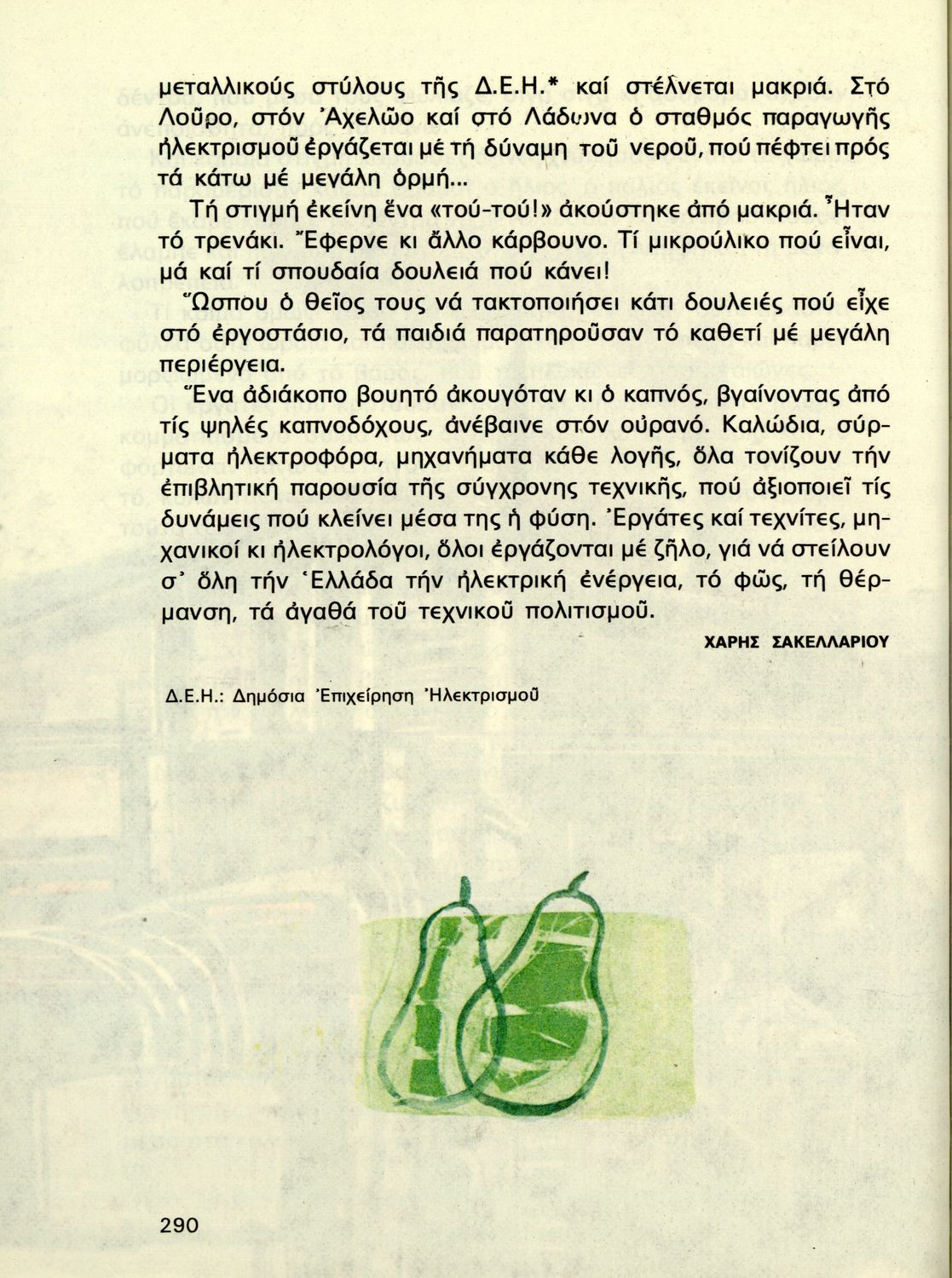Αναγνωστικό ΣΤ΄ Δημοτικού που περιέχει πεζά και ποιήματα εμπνευσμένα από την κοινωνική, θρησκευτική και εθνική ζωή, την πολιτιστική κληρονομιά και τα ολυμπιακά ιδεώδη καθώς και από τις ασχολίες των ανθρώπων και τα προβλήματά τους.