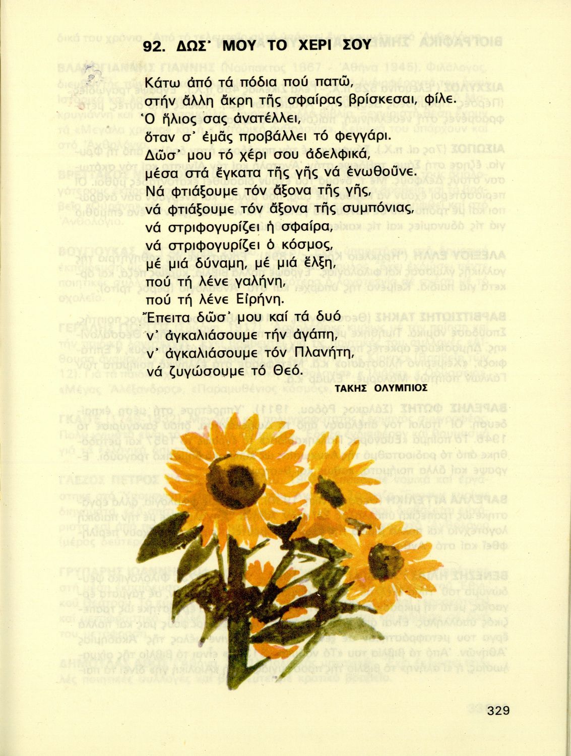 Αναγνωστικό ΣΤ΄ Δημοτικού που περιέχει πεζά και ποιήματα εμπνευσμένα από την κοινωνική, θρησκευτική και εθνική ζωή, την πολιτιστική κληρονομιά και τα ολυμπιακά ιδεώδη καθώς και από τις ασχολίες των ανθρώπων και τα προβλήματά τους.