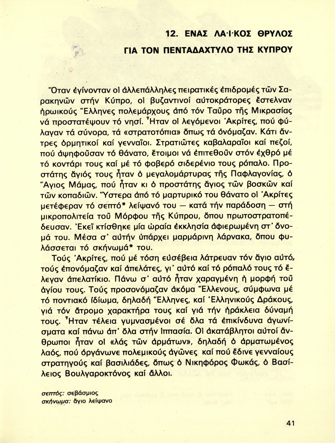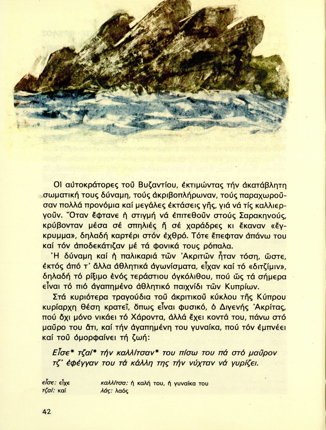 Αναγνωστικό ΣΤ΄ Δημοτικού που περιέχει πεζά και ποιήματα εμπνευσμένα από την κοινωνική, θρησκευτική και εθνική ζωή, την πολιτιστική κληρονομιά και τα ολυμπιακά ιδεώδη καθώς και από τις ασχολίες των ανθρώπων και τα προβλήματά τους.