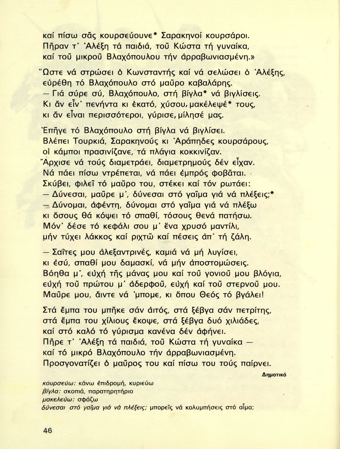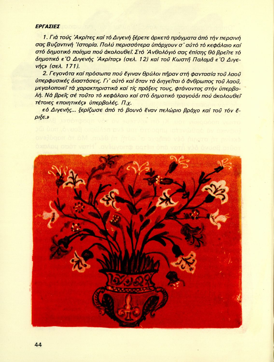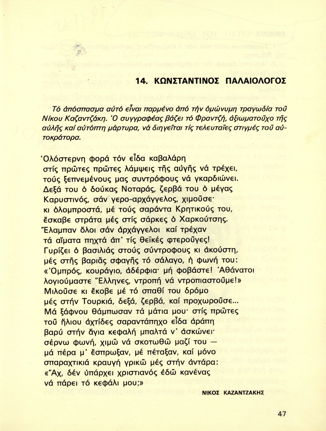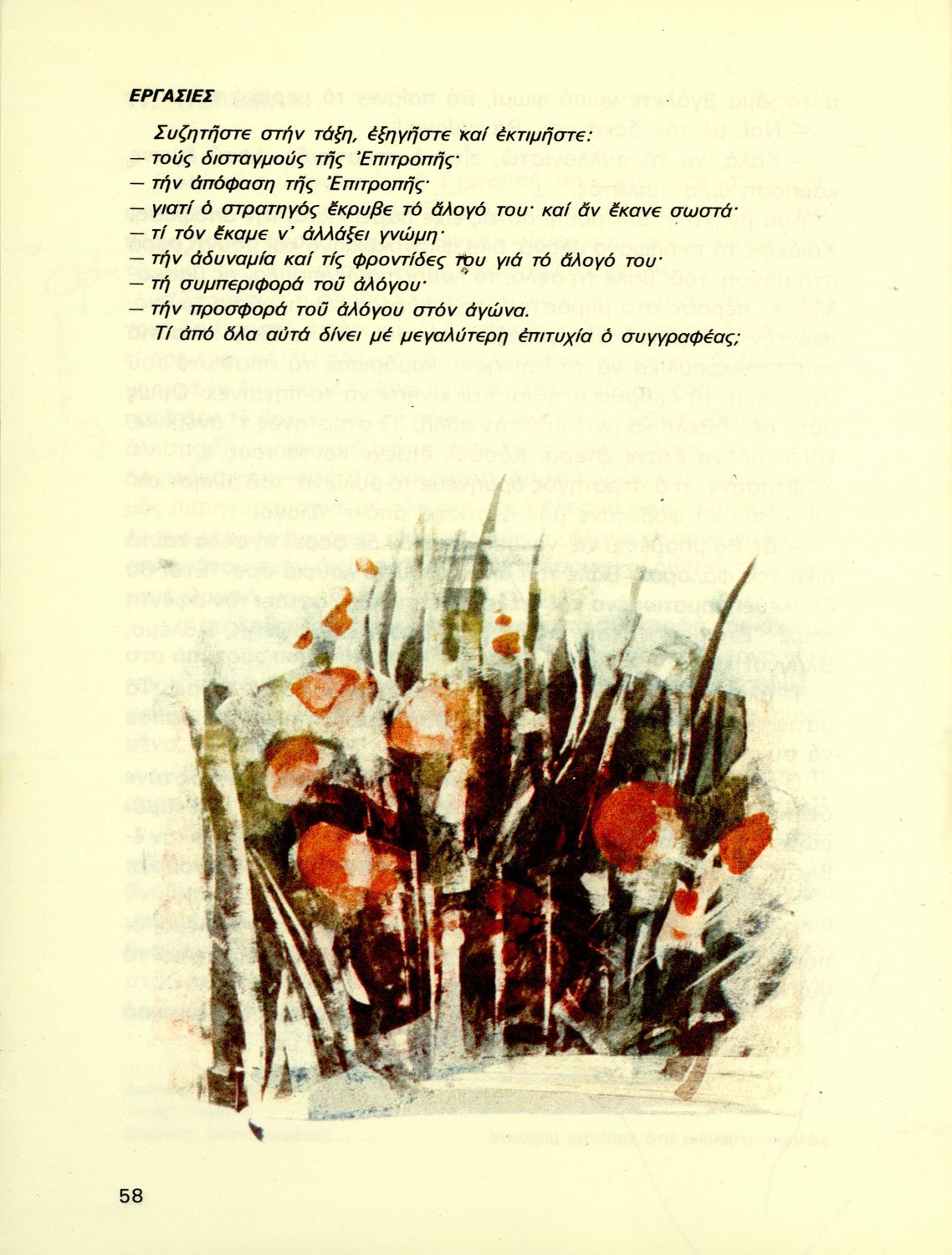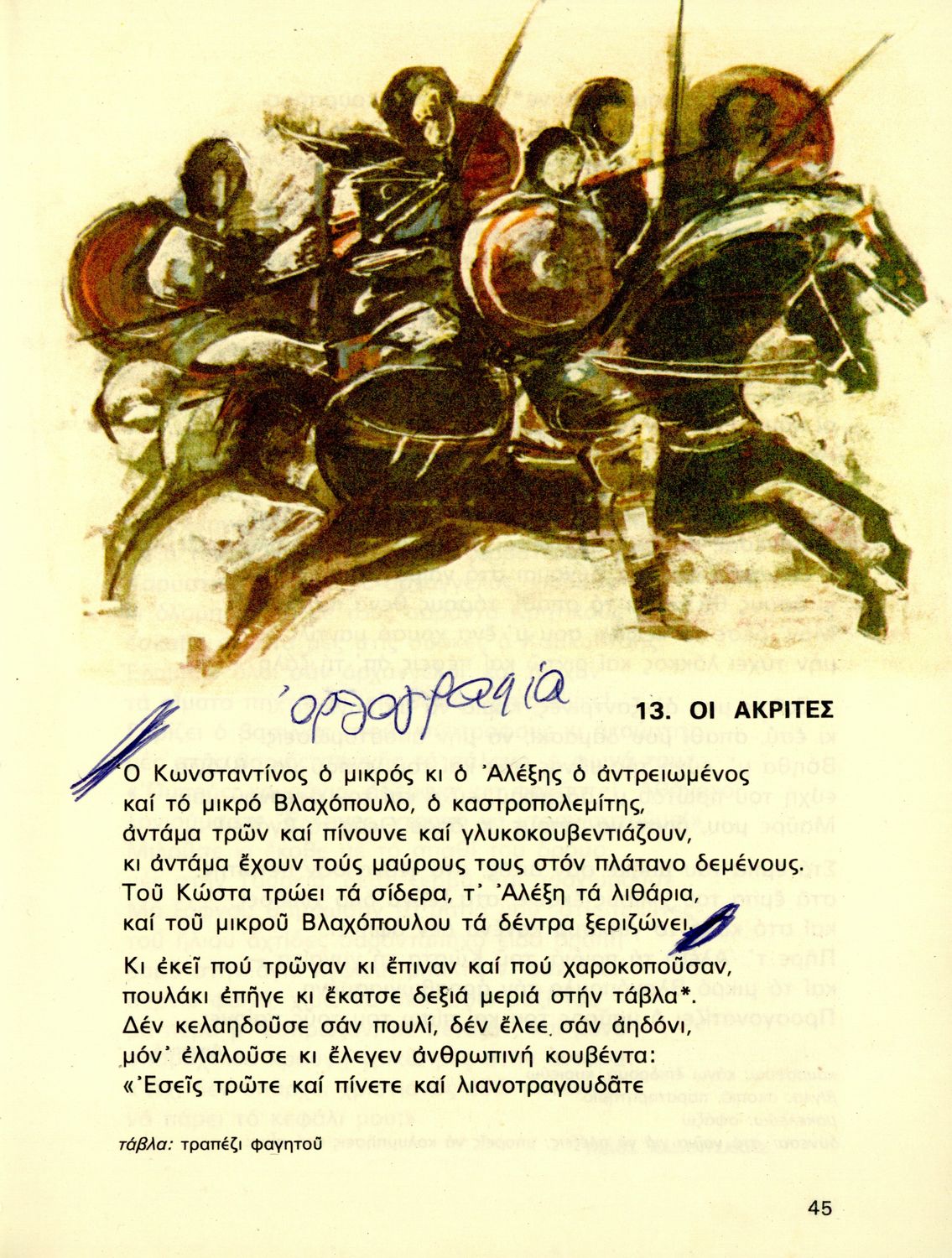 Αναγνωστικό ΣΤ΄ Δημοτικού που αντλεί τα θέματά του από τη θρησκευτική, εθνική, οικογενειακή, κοινωνική και επαγγελματική ζωή και την σύγχρονη ελληνική ιστορία. Φέρει το σύμβολο της δικτατορίας.