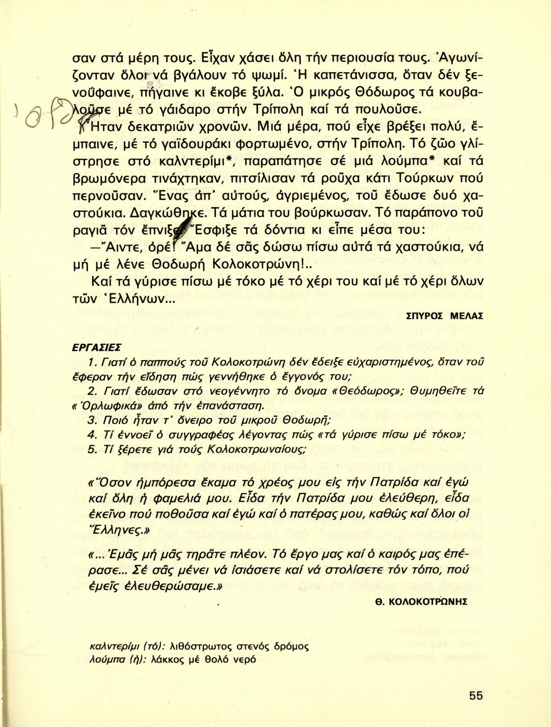 Αναγνωστικό της ΣΤ΄ Δημοτικού που κυκλοφόρησε σε 7.000 αντίτυπα 25 ημέρες πριν την 4η Αυγούστου 1936, οπότε κατά την επόμενη σχολική χρονιά διδάχτηκε ελάχιστα και η έκδοσή του με αυτή την μορφή σταμάτησε.