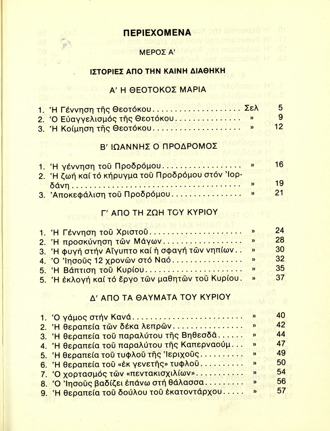 Μαθητικό βοήθημα Θρησκευτικών Δ΄ Δημοτικού που αποτελεί μια εξιστόρηση της Καινής Διαθήκης από τη γέννηση της Θεοτόκου μέχρι την μεταμόρφωση του Σωτήρα.