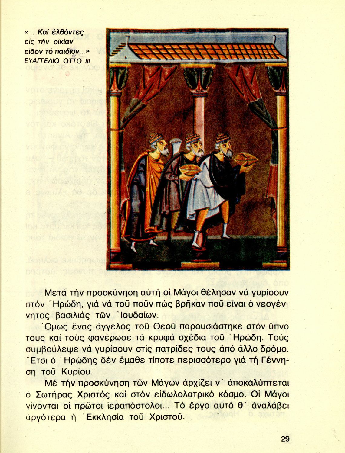 Σχολικό εγχειρίδιο Θρησκευτικών Δ΄ Δημοτικού που αποτελεί μια εξιστόρηση της Καινής Διαθήκης από τη γέννηση της Θεοτόκου μέχρι την ανάληψη του Χριστού. Περιέχει προσευχές και στοιχεία γεωγραφίας της ...