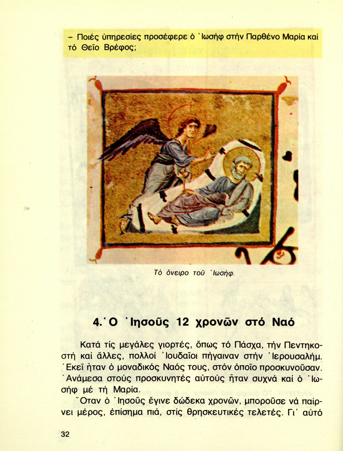 Σχολικό εγχειρίδιο Θρησκευτικών Δ΄ Δημοτικού που περιλαμβάνει την ιστορία της Καινής Διαθήκης από τον Ευαγγελισμό της Θεοτόκου μέχρι τη δράση των Αποστόλων. Περιέχει ύμνους και προσευχές.
