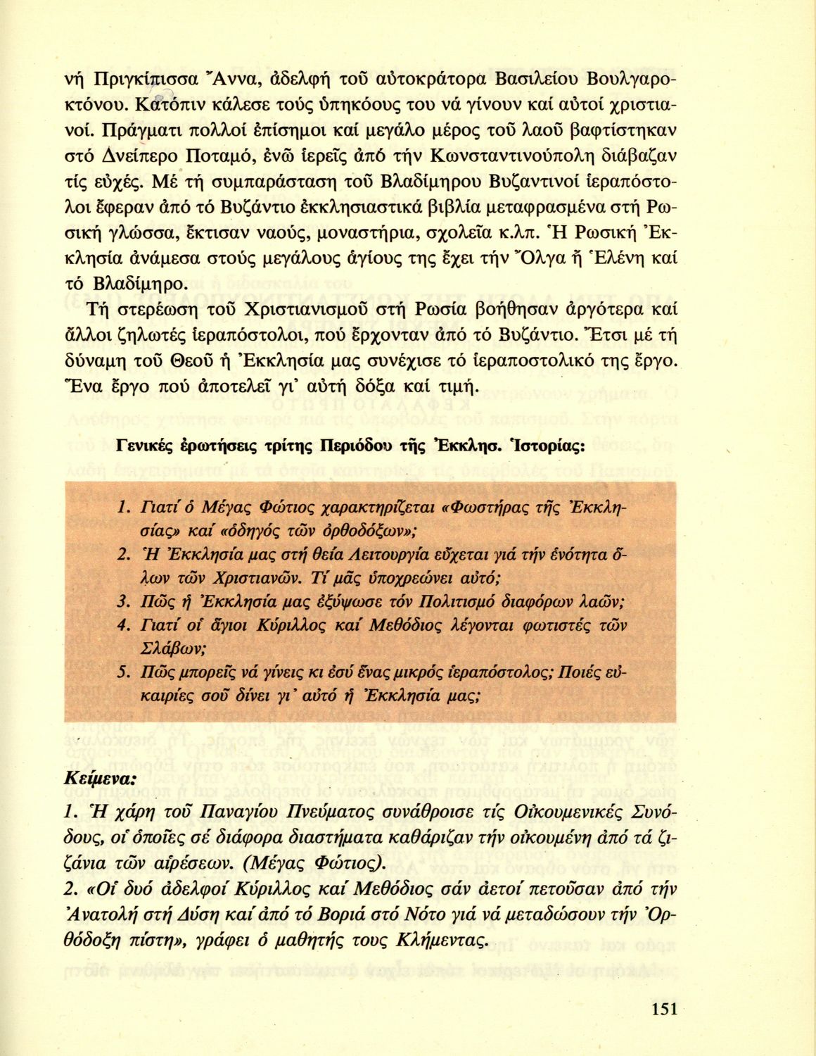 Σχολικό εγχειρίδιο Θρησκευτικών Ε΄ Δημοτικού που περιέχει την ιστορία της Ορθόδοξης Εκκλησίας από την ίδρυσή της μέχρι την δημιουργία της Εκκλησίας της Ελλάδας.