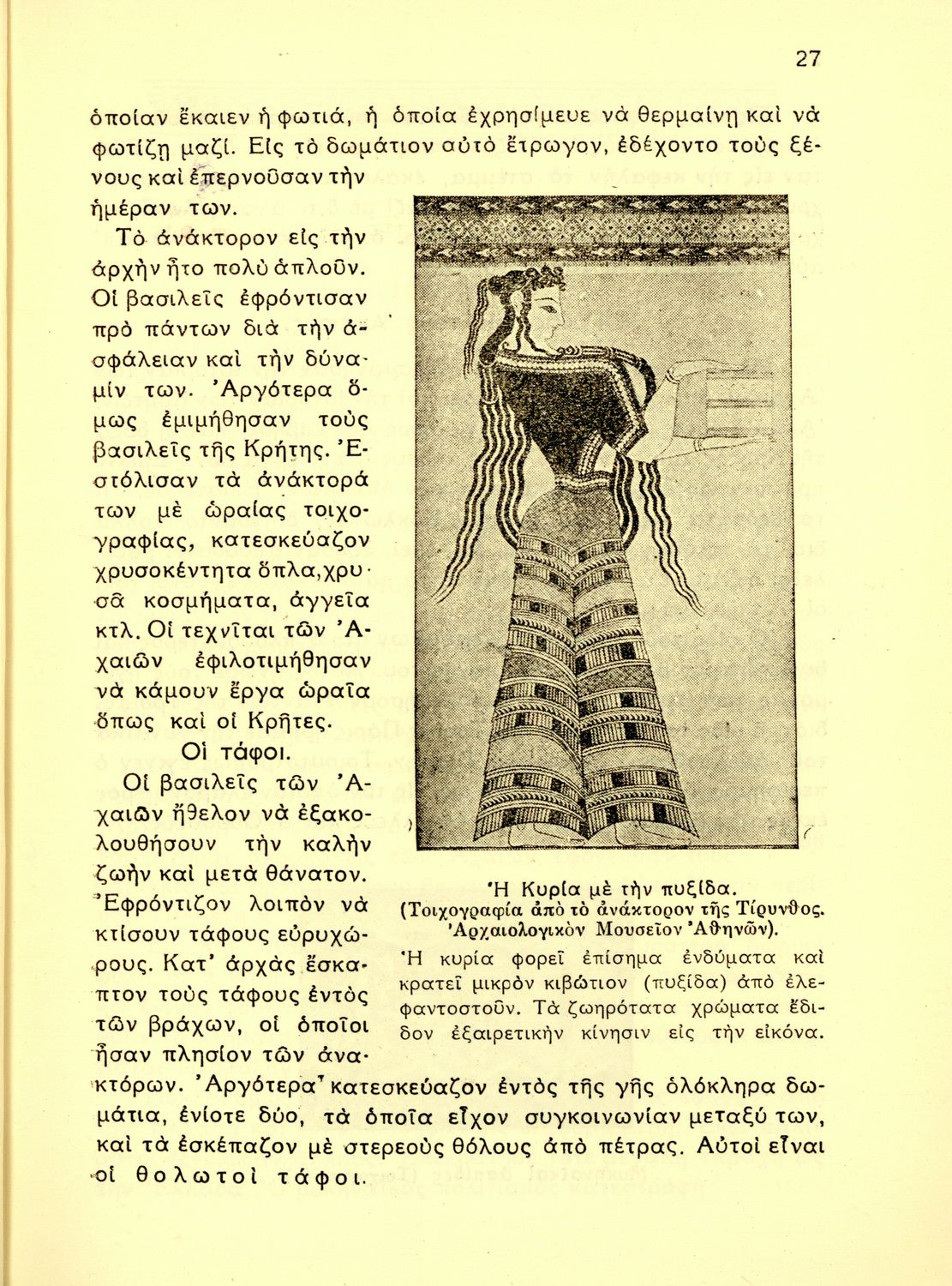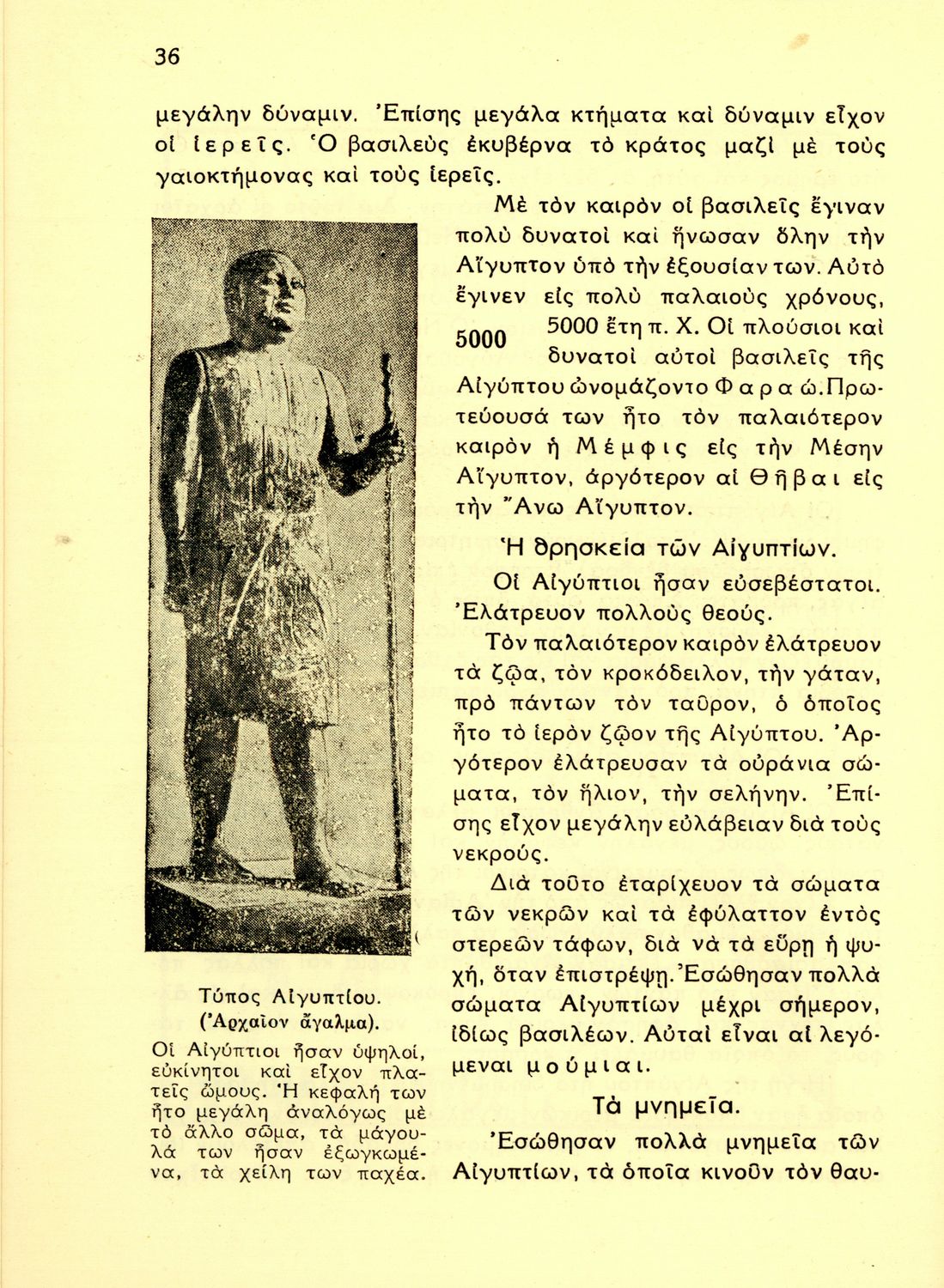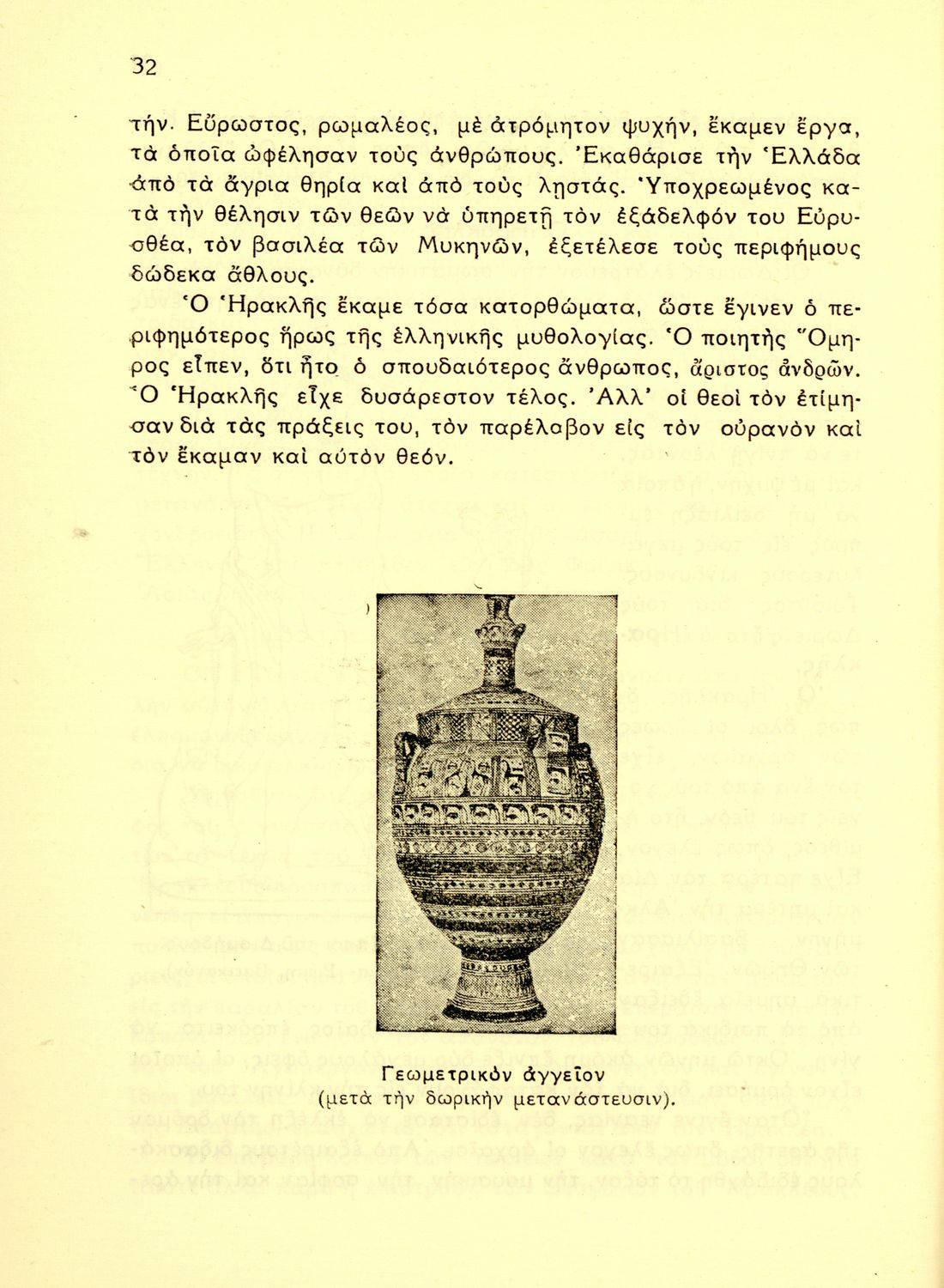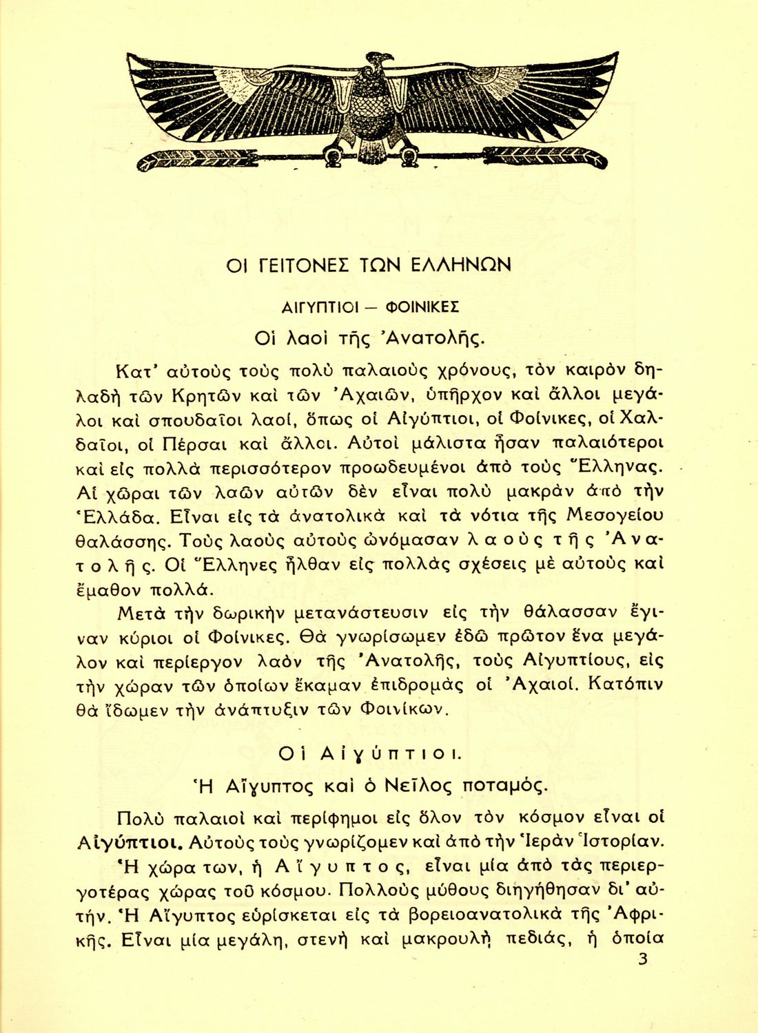 Βαθμίδα εκπαίδευσης: Δευτεροβάθμια Τάξη: Α' Γυμνασίου Μάθημα: Ιστορία Γλώσσα: Απλή καθαρεύουσα Παρουσίαση περιεχομένου: Σχολικό εγχειρίδιο Ιστορίας Α΄ Γυμνασίου που καλύπτει την περίοδο από τους προϊστορικούς χρόνους ως τις μεταρρυθμίσεις του Κλεισθένη. Περιέχει και εκτενή αναφορά στην ανάπτυξη των γραμμάτων, των τεχνών και του εμπορίου. |