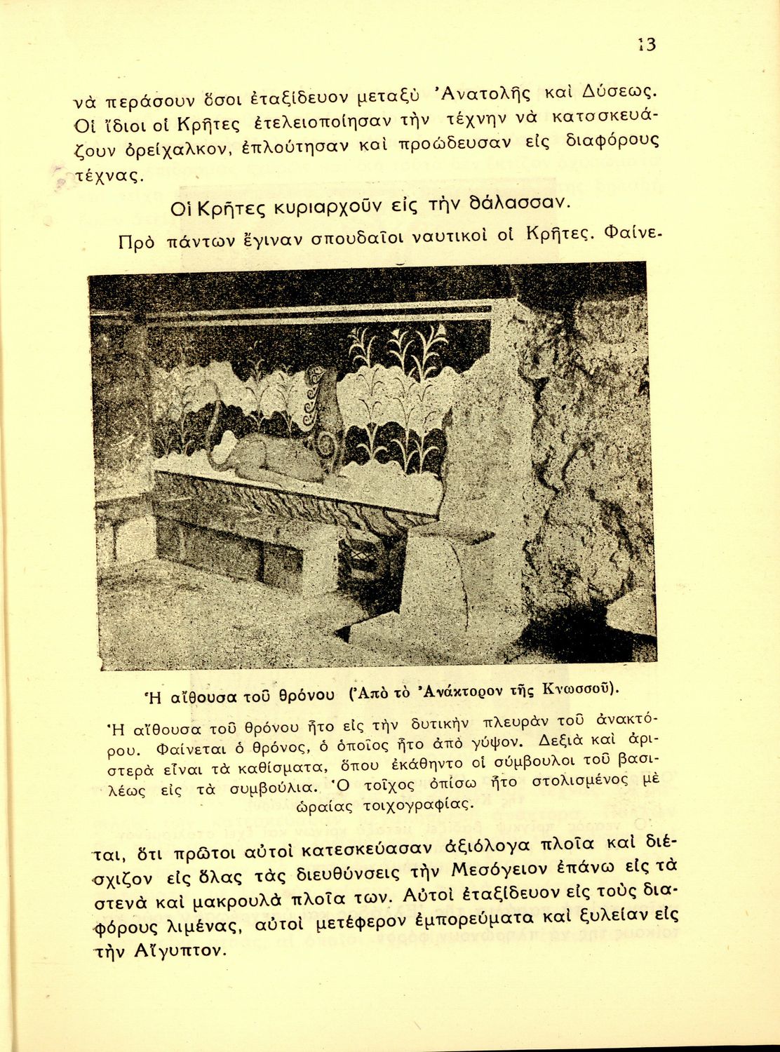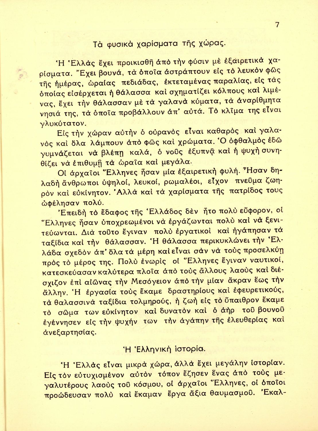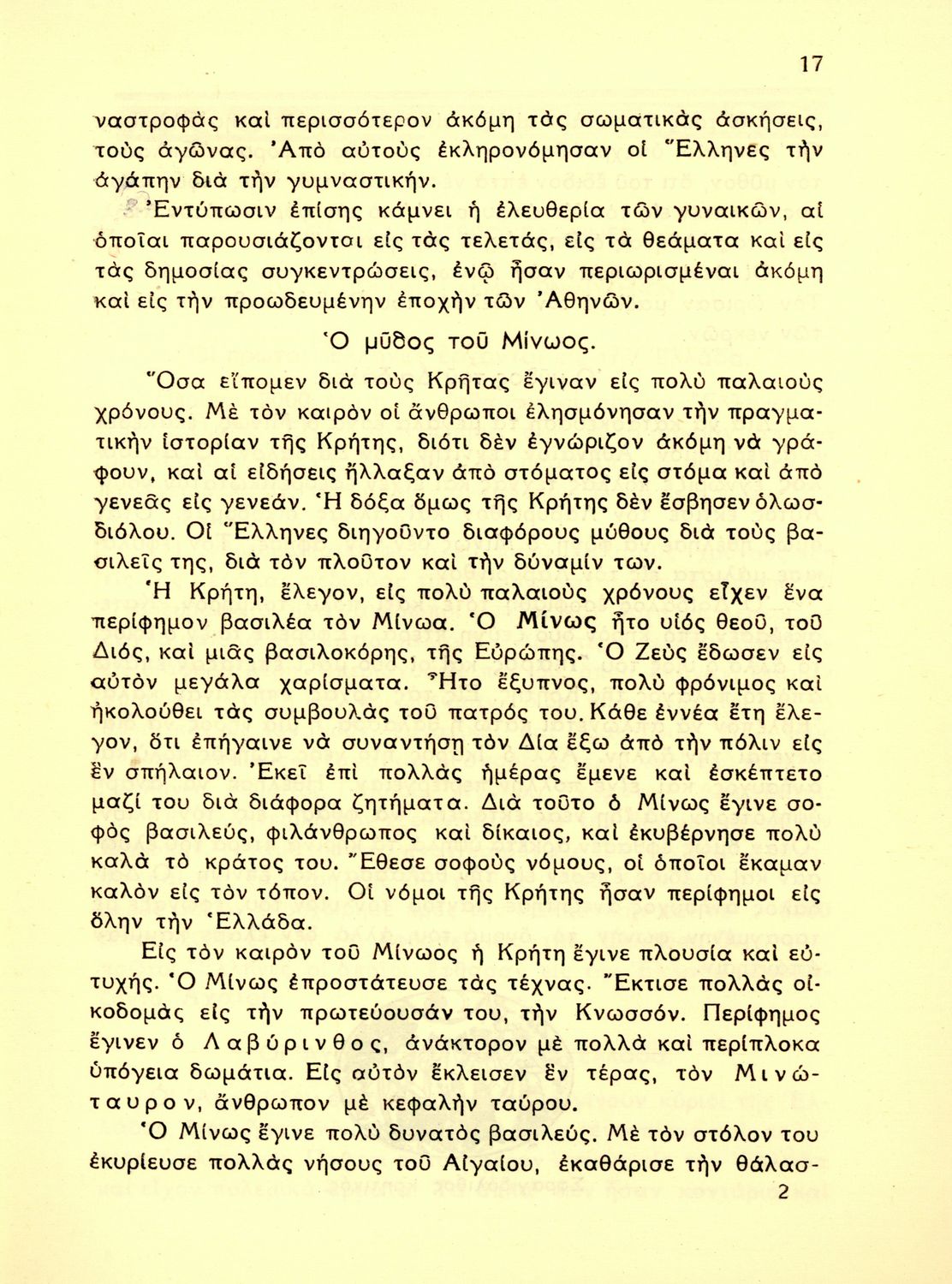 Βαθμίδα εκπαίδευσης: Δευτεροβάθμια Τάξη: Α' Γυμνασίου Μάθημα: Ιστορία Γλώσσα: Απλή καθαρεύουσα Παρουσίαση περιεχομένου: Σχολικό εγχειρίδιο Ιστορίας Α΄ Γυμνασίου που καλύπτει την περίοδο από τους προϊστορικούς χρόνους ως τις μεταρρυθμίσεις του Κλεισθένη. Περιέχει και εκτενή αναφορά στην ανάπτυξη των γραμμάτων, των τεχνών και του εμπορίου. |