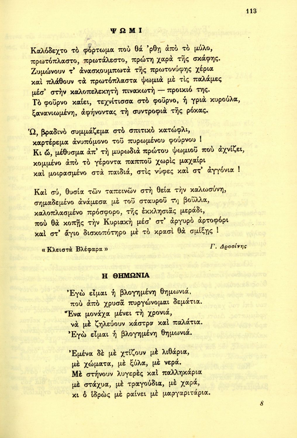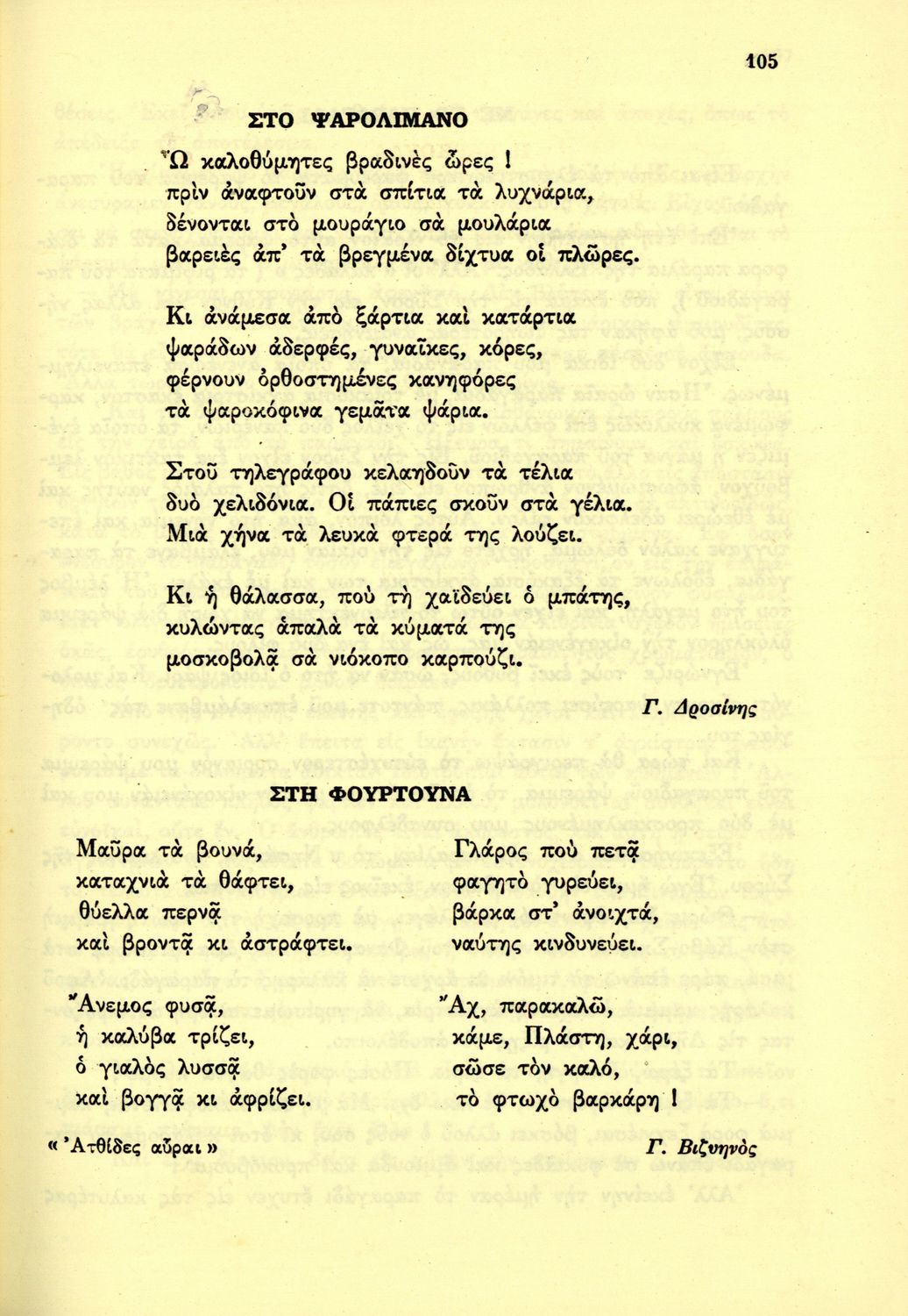 Σχετιζόμενοι όροι:  Παπαντωνίου, Πολέμης, Παλαμάς, Βηλαράς