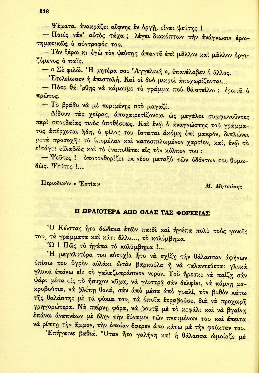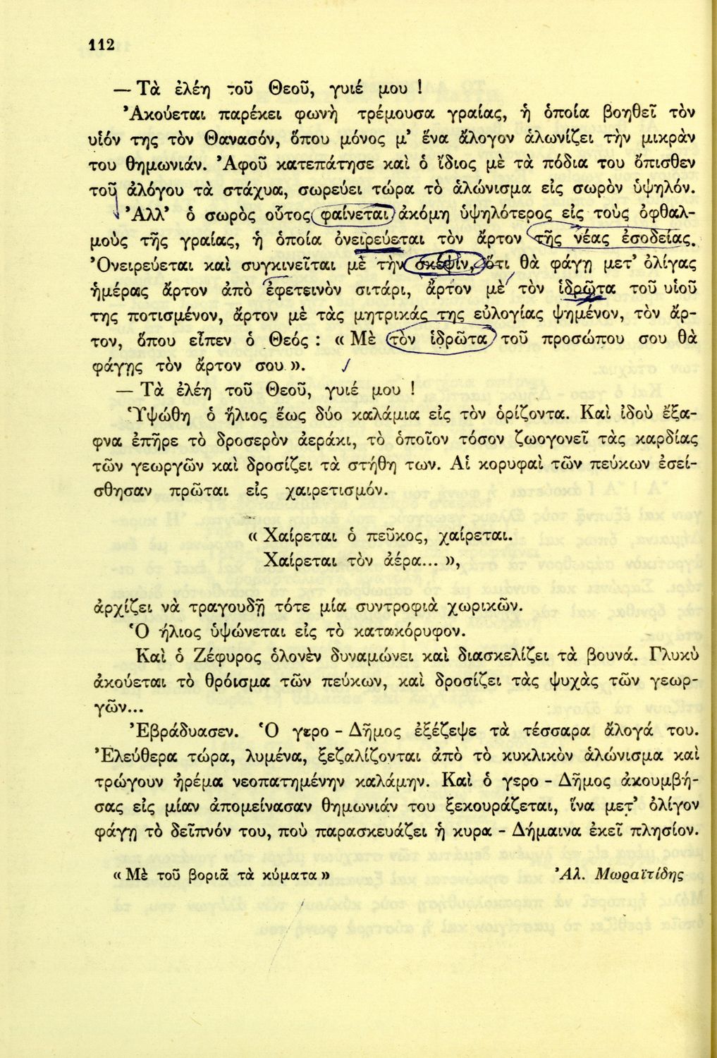 Σχολικό εγχειρίδιο Νέων Ελληνικών Γ΄ Γυμνασίου και Α' Αστικού Σχολείου που περιέχει πεζά και ποιήματα Ελλήνων συγγραφέων εμπνευσμένα από τη θρησκευτική και κοινωνική ζωή, την ελληνική μυθολογία, την αρχαία και