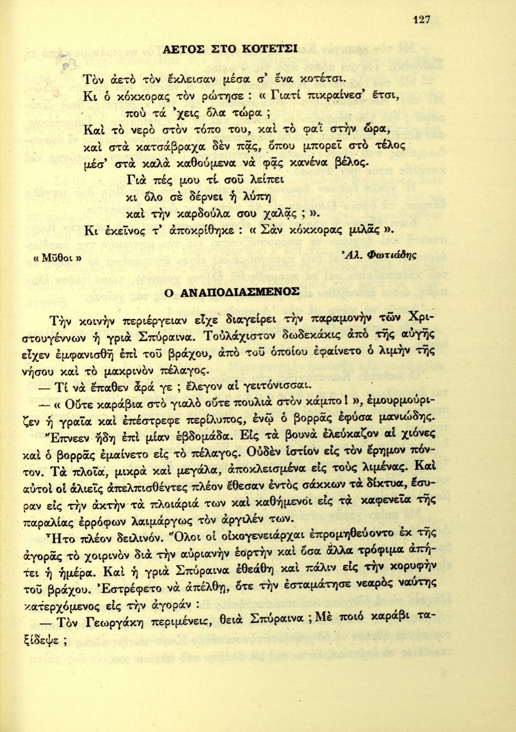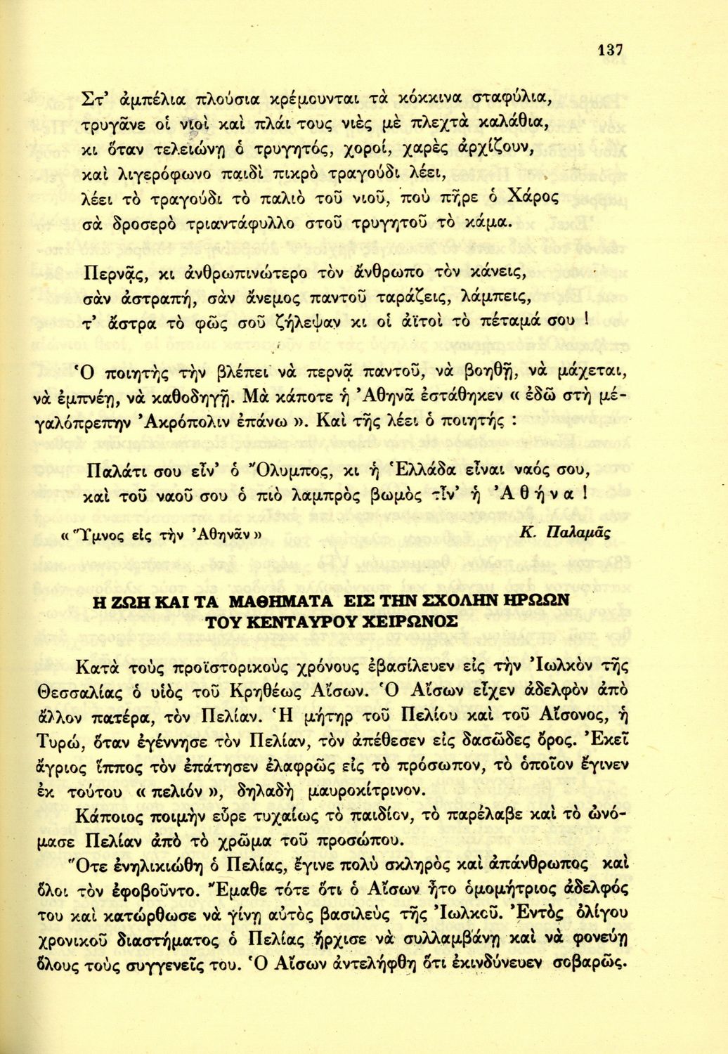 Σχολικό εγχειρίδιο Νέων Ελληνικών Γ΄ Γυμνασίου και Α' Αστικού Σχολείου που περιέχει πεζά και ποιήματα Ελλήνων συγγραφέων εμπνευσμένα από τη θρησκευτική και κοινωνική ζωή, την ελληνική μυθολογία, την αρχαία και