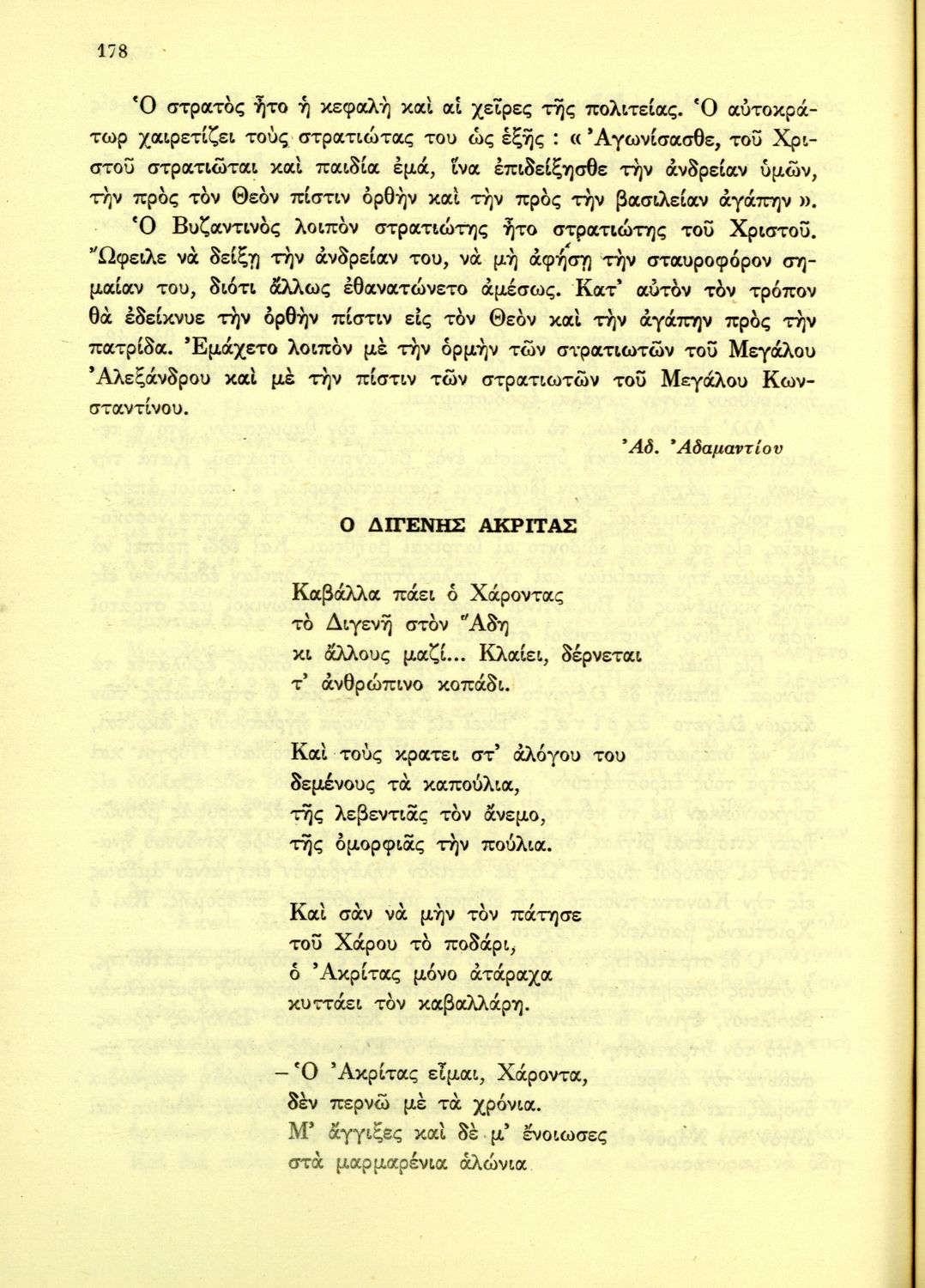 Σχολικό εγχειρίδιο Νέων Ελληνικών Γ΄ Γυμνασίου και Α' Αστικού Σχολείου που περιέχει πεζά και ποιήματα Ελλήνων συγγραφέων εμπνευσμένα από τη θρησκευτική και κοινωνική ζωή, την ελληνική μυθολογία, την αρχαία και