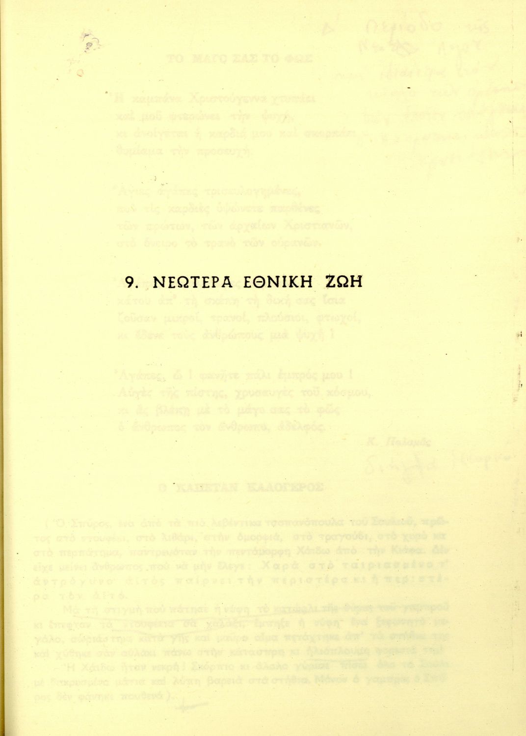Σχολικό εγχειρίδιο Νέων Ελληνικών Γ΄ Γυμνασίου και Α' Αστικού Σχολείου που περιέχει πεζά και ποιήματα Ελλήνων συγγραφέων εμπνευσμένα από τη θρησκευτική και κοινωνική ζωή, την ελληνική μυθολογία, την αρχαία και