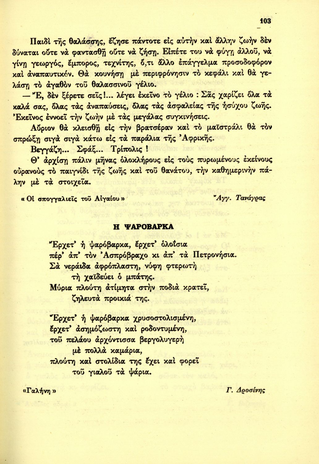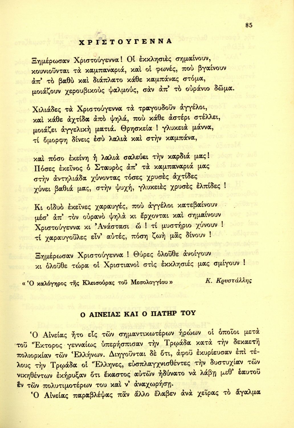 Σχολικό εγχειρίδιο Νέων Ελληνικών της Α΄ Γυμνασίου το οποίο περιλαμβάνει σειρά κειμένων τα οποία αντλούν από τον οικογενειακό, κοινωνικό και θρησκευτικό βίο αλλά και από το εθνικό παρελθόν και την ελληνική ύπαιθρο.