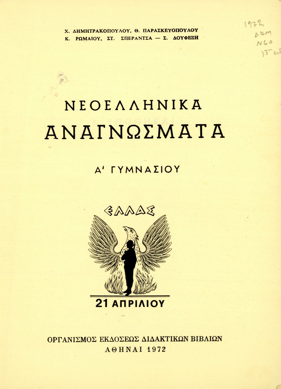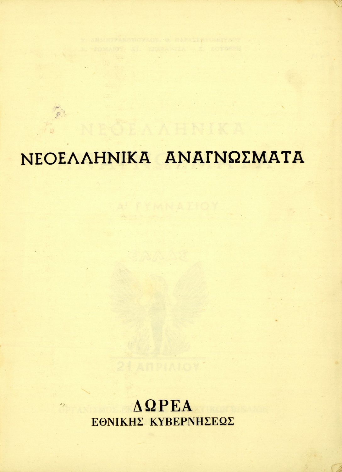 Σχολικό εγχειρίδιο Νέων Ελληνικών της Α΄ Γυμνασίου το οποίο περιλαμβάνει σειρά κειμένων τα οποία αντλούν από τον οικογενειακό, κοινωνικό και θρησκευτικό βίο αλλά και από το εθνικό παρελθόν και την ελληνική ύπαιθρο.