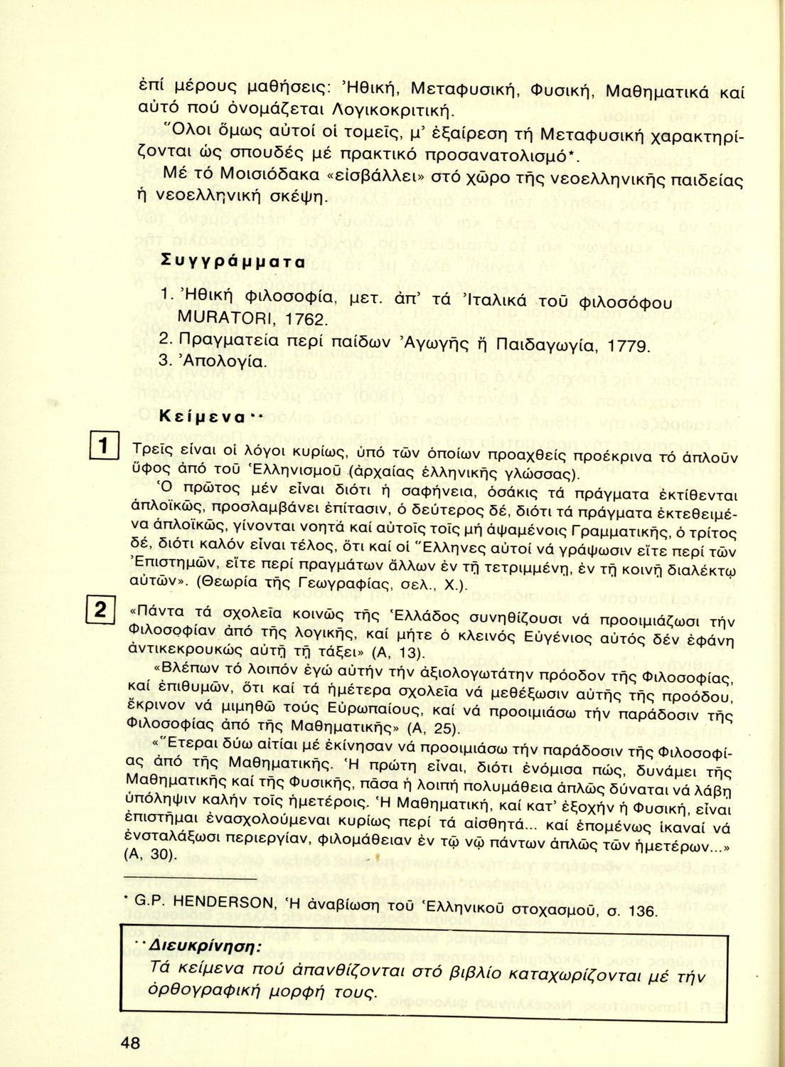 Σχολικό εγχειρίδιο Ιστορίας Γ΄ Λυκείου που πραγματεύεται τον ευρωπαϊκό διαφωτισμό, νεοελληνικό διαφωτισμό και θέματα νεοελληνικής ιστορίας (1750-1850) από πηγές.
