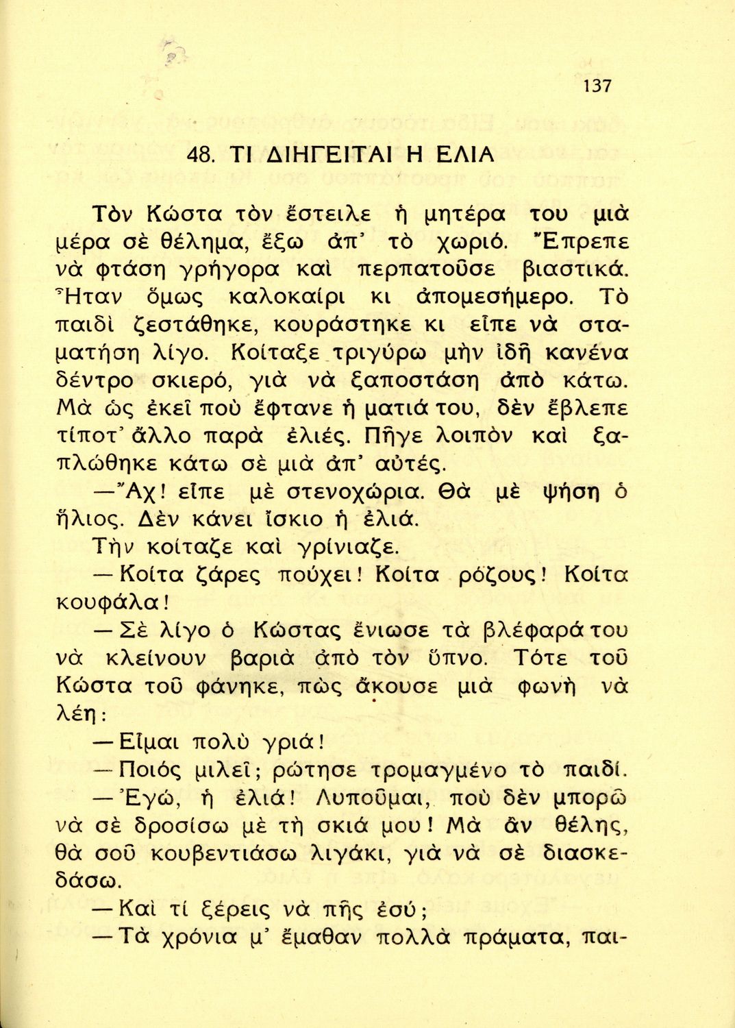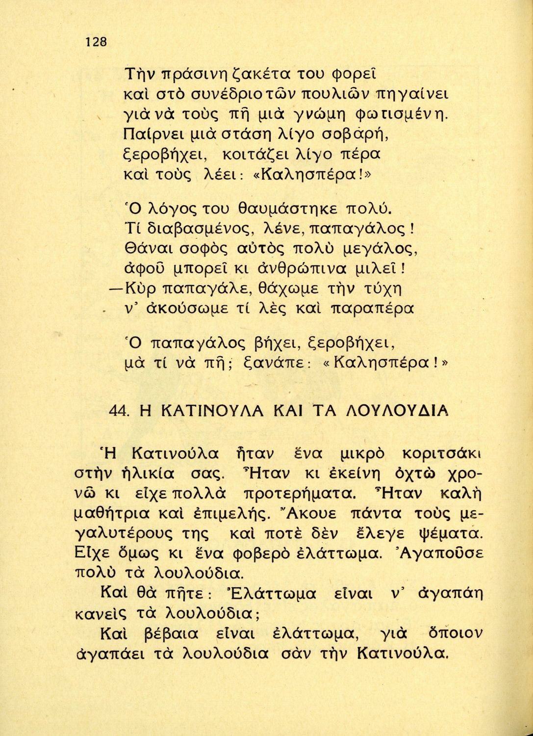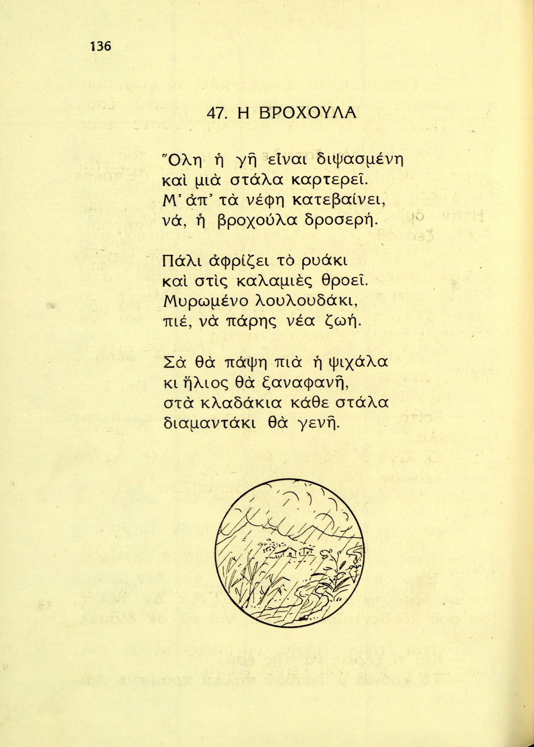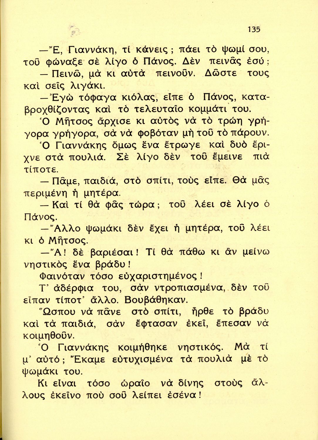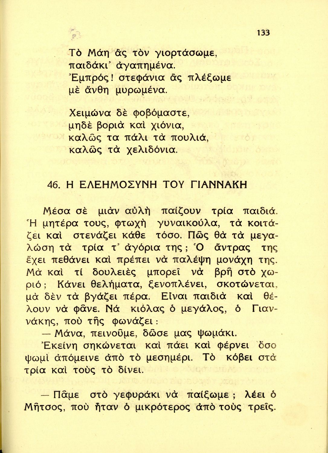 Αναγνωστικό Γ' Δημοτικού που περιέχει πεζά και ποιήματα εμπνευσμένα από τη θρησκευτική, εθνική, κοινωνική και ατομική ζωή, και την ελληνική φύση, ιστορία και μυθολογία.