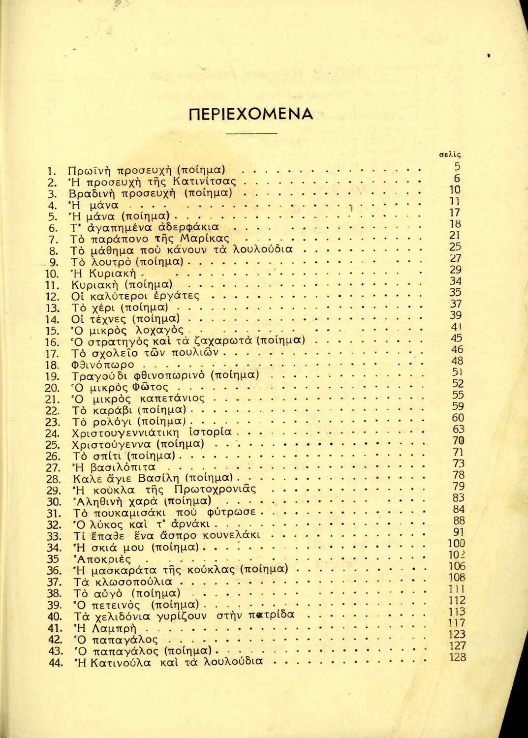 Αναγνωστικό Β΄ Δημοτικού που περιέχει ποιήματα και πεζά που αντλούν τα θέματά τους από τη φύση και την παράδοση της Ελλάδας και την κοινωνική και επαγγελματική ζωή των κατοίκων της.