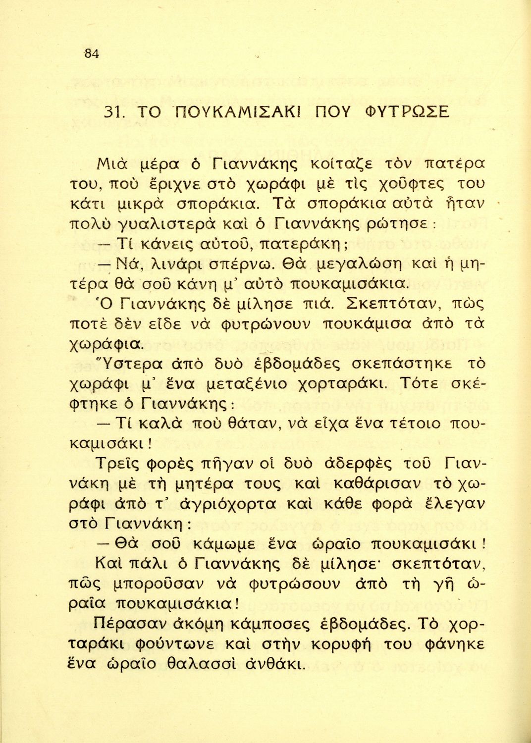 Αναγνωστικό Β΄ Δημοτικού που περιέχει ποιήματα και πεζά που αντλούν τα θέματά τους από τη φύση και την παράδοση της Ελλάδας και την κοινωνική και επαγγελματική ζωή των κατοίκων της.
