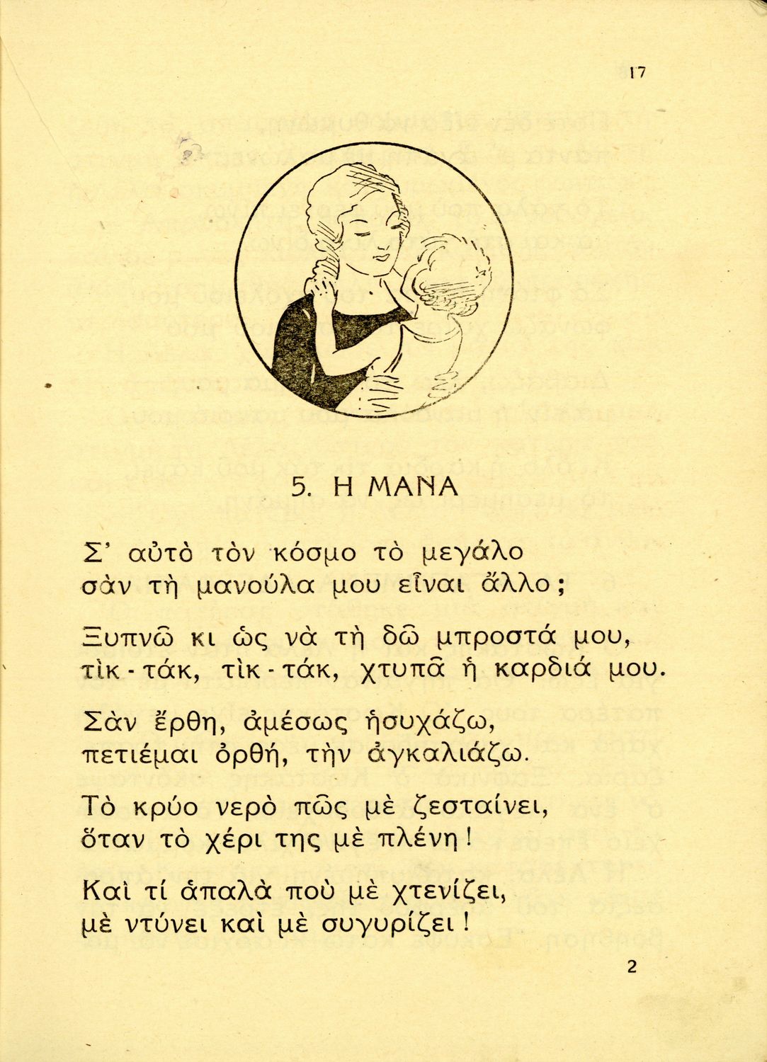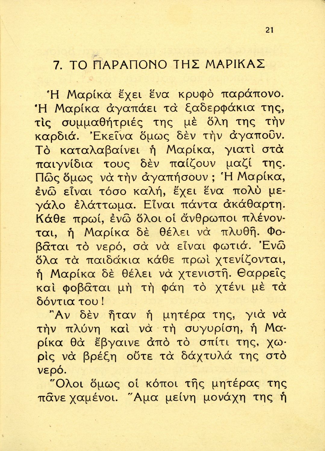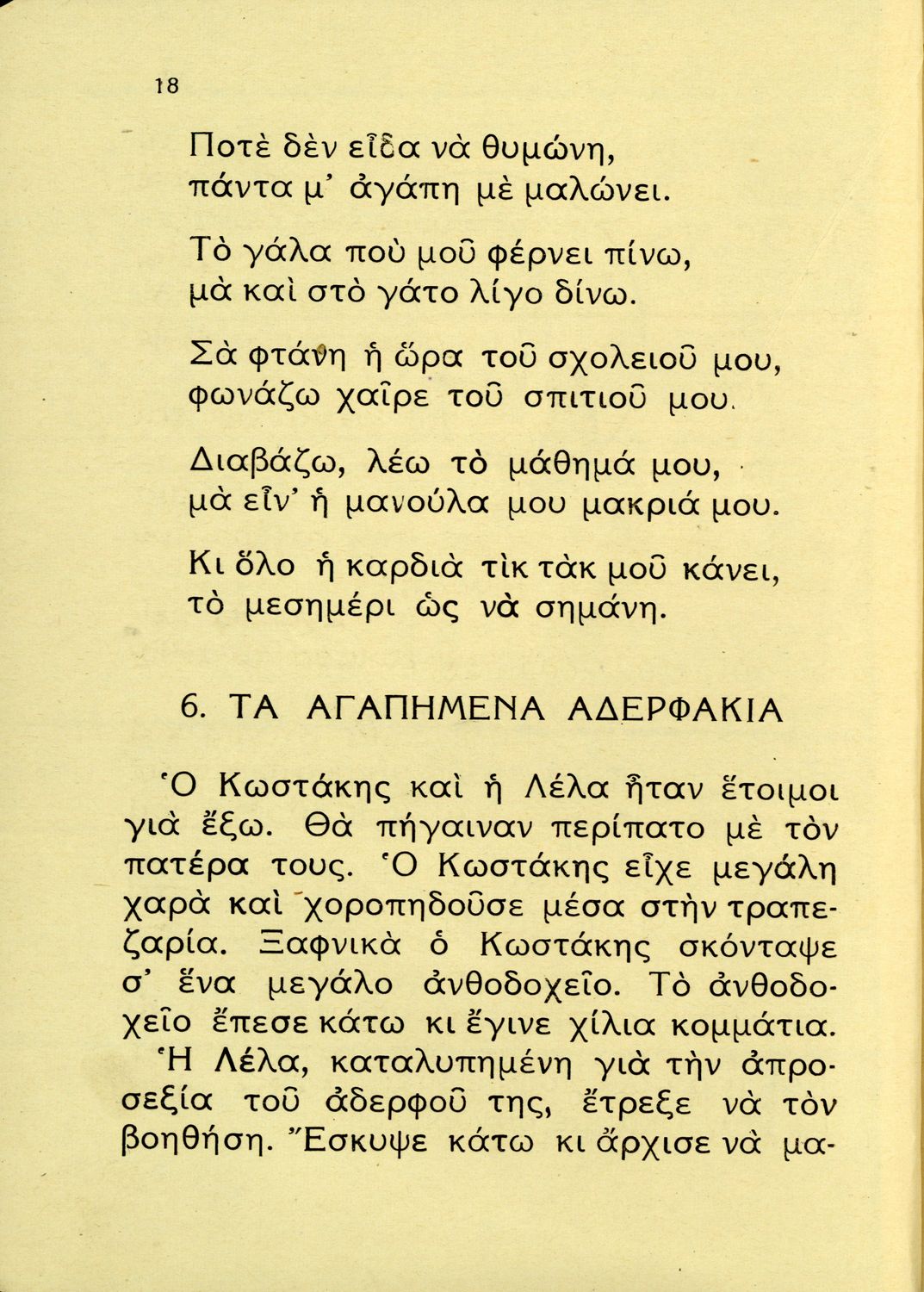 Αναγνωστικό Β΄ Δημοτικού που περιέχει ποιήματα και πεζά που αντλούν τα θέματά τους από τη φύση και την παράδοση της Ελλάδας και την κοινωνική και επαγγελματική ζωή των κατοίκων της.