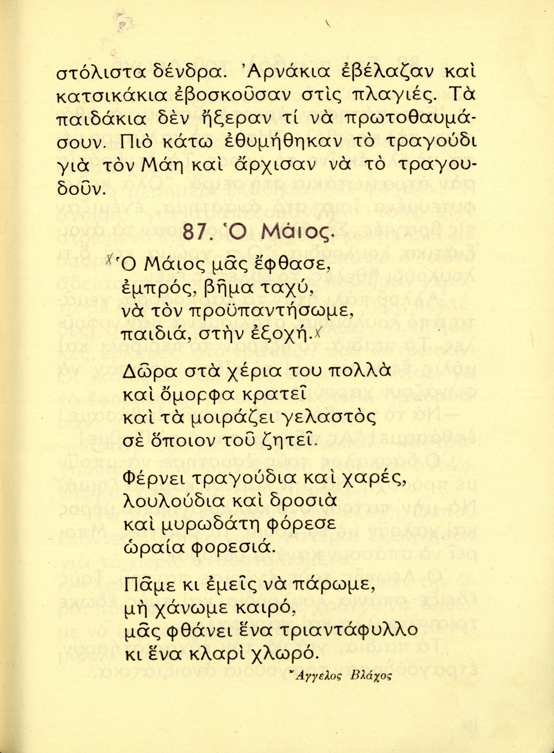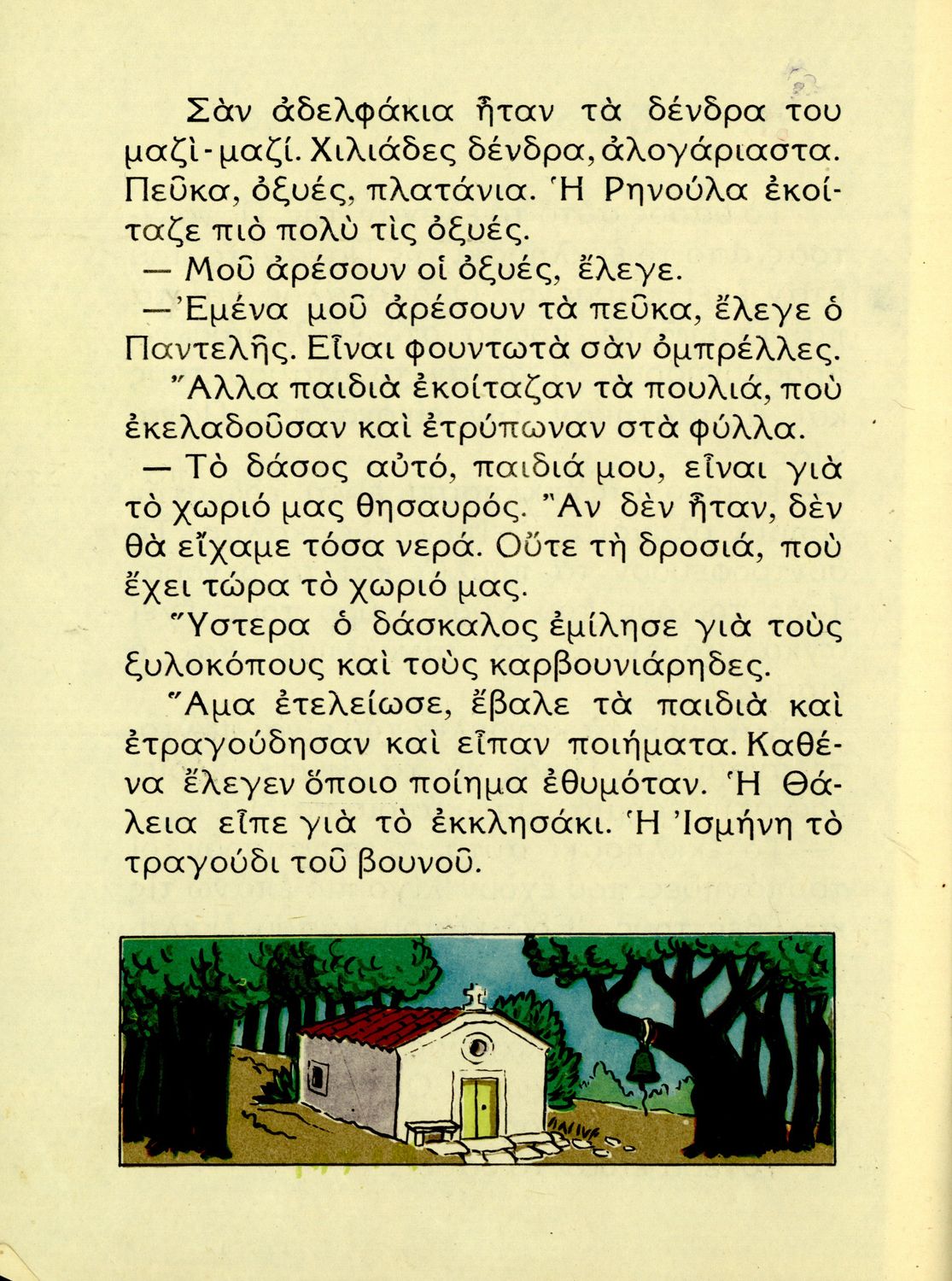 Αναγνωστικό Β' Δημοτικού που είναι χωρισμένο σύμφωνα με τις εποχές του χρόνου και περιλαμβάνει κείμενα ηθοποιητικού περιεχομένου εμπνευσμένα από τη θρησκευτική, εθνική, κοινωνική και οικογενειακή ζωή.
