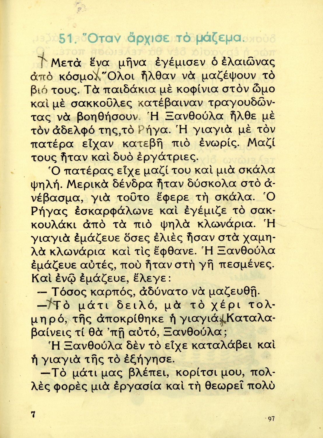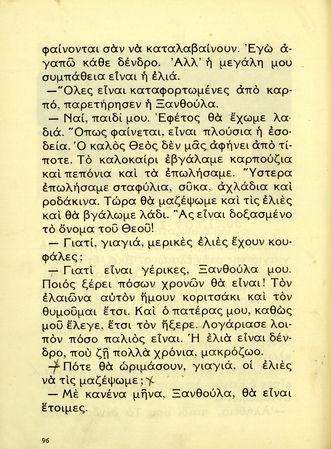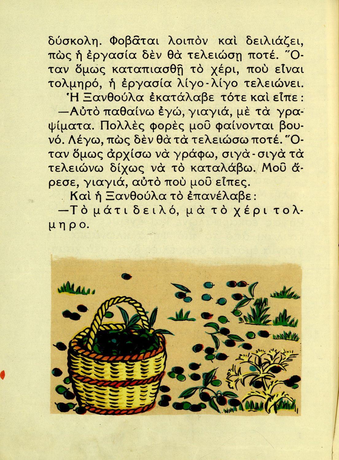 Αναγνωστικό Β' Δημοτικού που είναι χωρισμένο σύμφωνα με τις εποχές του χρόνου και περιλαμβάνει κείμενα ηθοποιητικού περιεχομένου εμπνευσμένα από τη θρησκευτική, εθνική, κοινωνική και οικογενειακή ζωή.