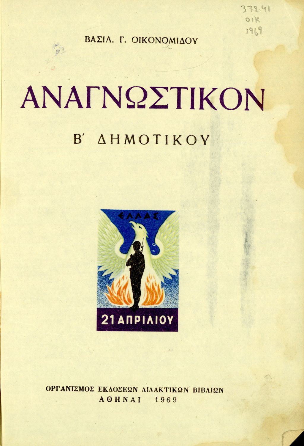 Εκδότης: Οργανισμός Εκδόσεως Σχολικών Βιβλίων Έτος έκδοσης: 1969 Τόπος έκδοσης: Αθήνα |