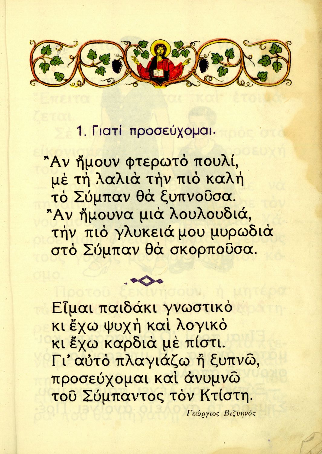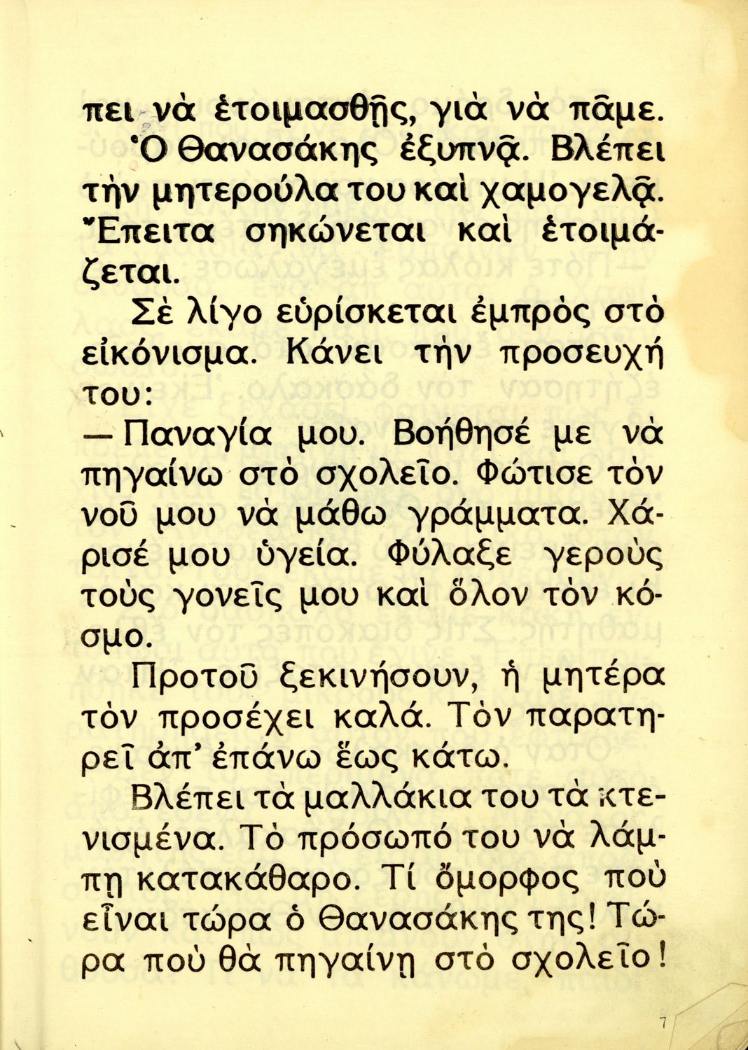 Αναγνωστικό Β' Δημοτικού που είναι χωρισμένο σύμφωνα με τις εποχές του χρόνου και περιλαμβάνει κείμενα ηθοποιητικού περιεχομένου εμπνευσμένα από τη θρησκευτική, εθνική, κοινωνική και οικογενειακή ζωή.