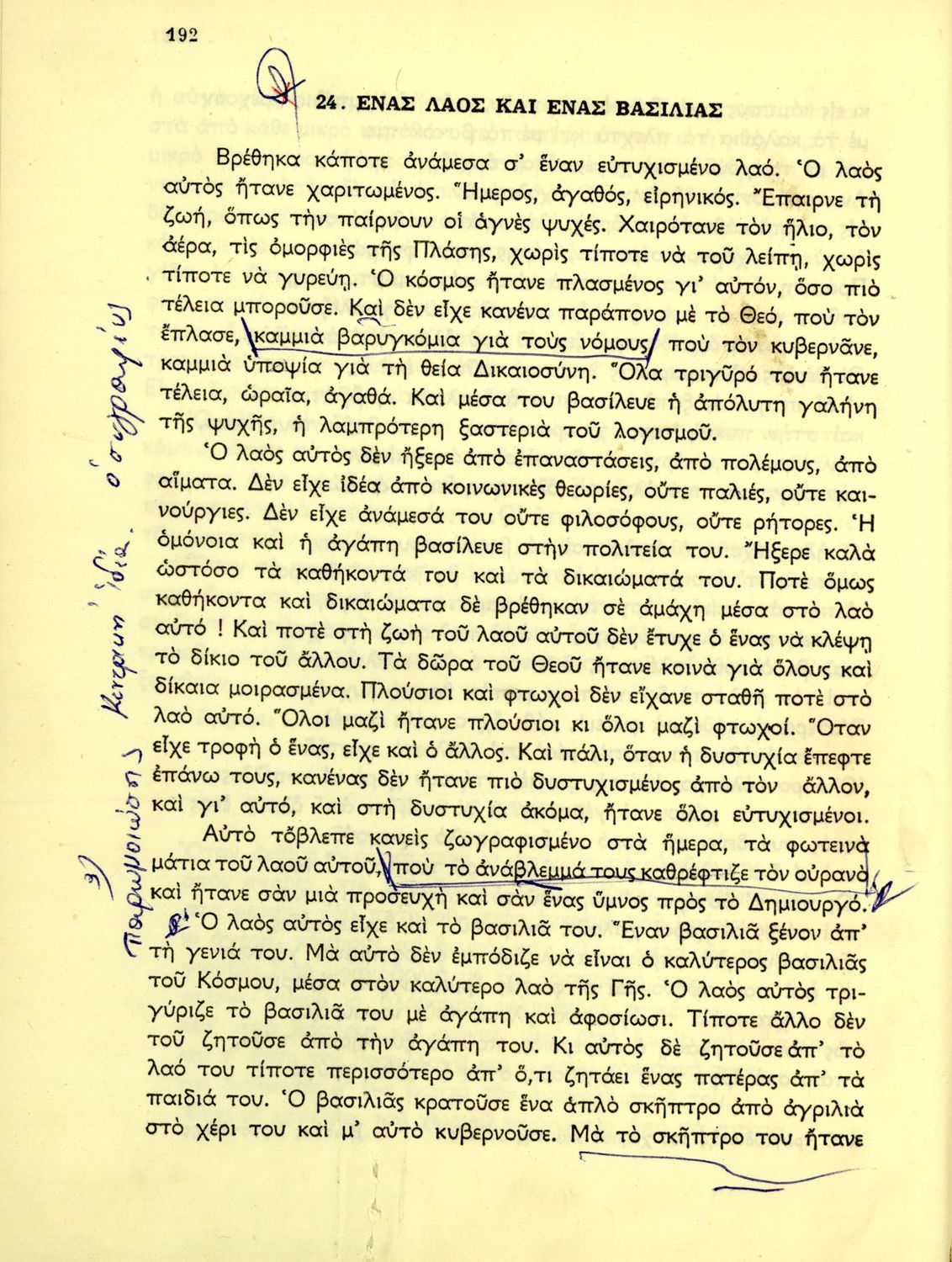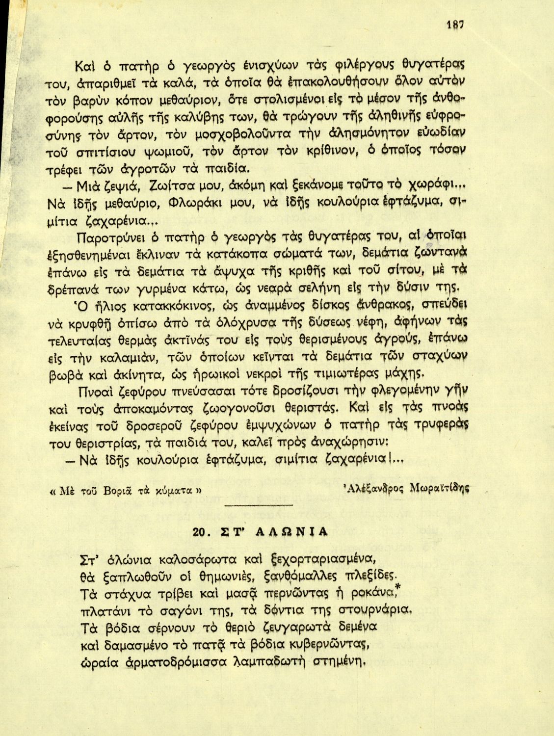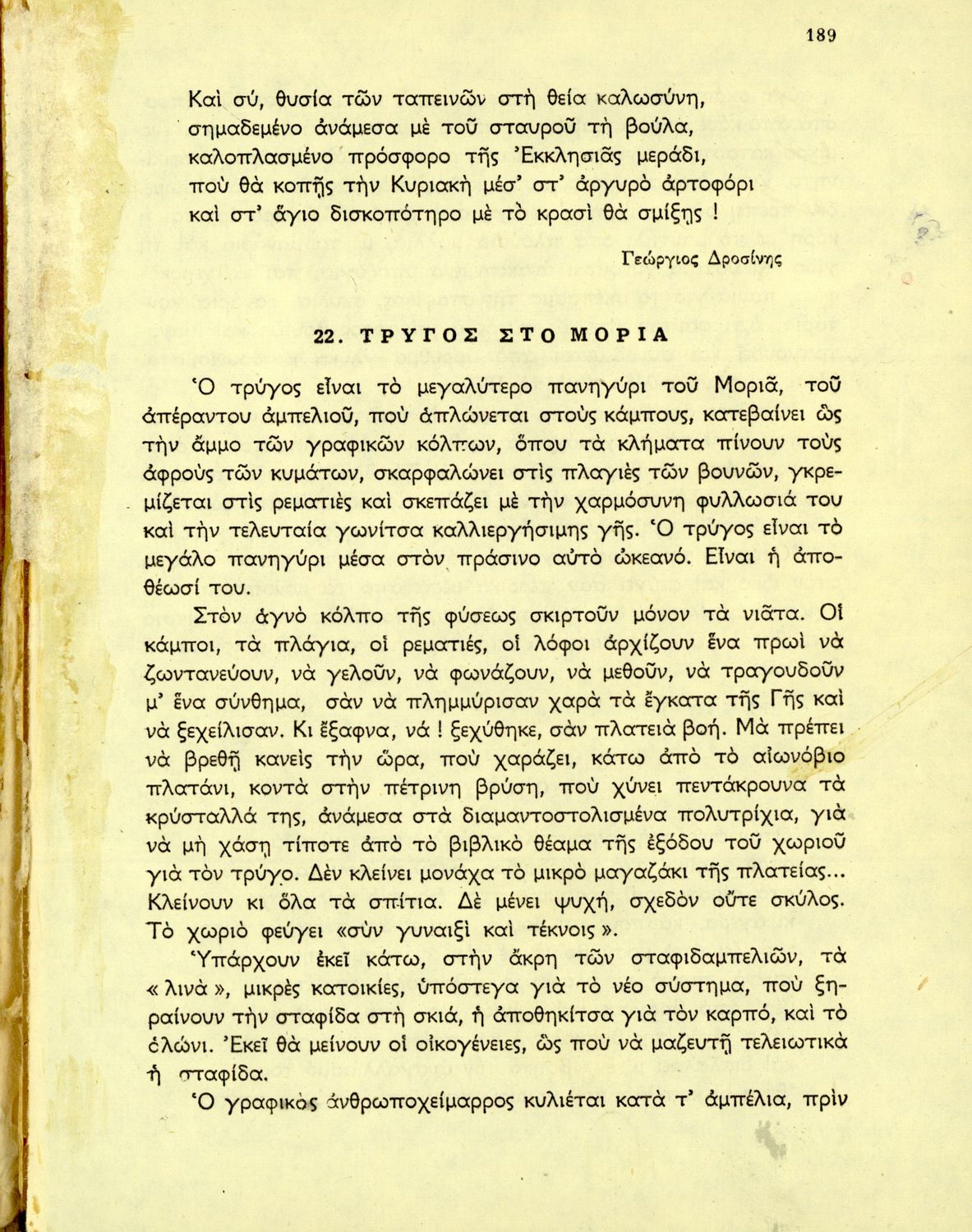 Σχολικό εγχειρίδιο Νέων Ελληνικών Δ΄ Γυμνασίου και Β΄ Αστικού Σχολείου που περιέχει πεζά και ποιήματα Ελλήνων συγγραφέων εμπνευσμένα από τη θρησκευτική και κοινωνική ζωή, την ελληνική μυθολογία, την αρχαία και