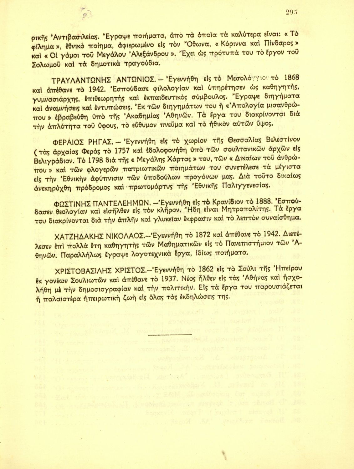 Σχετιζόμενοι όροι:  Κρυστάλλης, Παλαμάς, Σολωμός, Δροσίνης